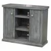 A little bit modern, a little bit casual, the Altra Buckner TV Stand is a wholly marvelous choice for your TV and all its A/V components. Engineered wood features a chic slanted base design, while the storage setup is equally chic. Two open shelves in the center are flanked by two cabinets with glass doors, brushed nickel-finished metal pulls, and inside, one adjustable shelf each with a weight capacity of 25 pounds. The TV stand can fit flat-panel TVs up to 58 inches wide with a 95-pound weight capacity.