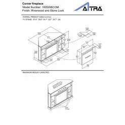 Even with limited space, you can warm up your room with the Altra Overland 47.6 in. Electric Corner Fireplace – Expresso. The corner style will support a 50 inch television and features plenty of storage on multiple shelves. An attractive grey faux marble frames the 23 inch ventless electric firebox, while the expresso finish on the engineered wood frame creates a rich, traditional look. Create your mood with or without heat with the four setting touch panel, or from across the room with the remote. The built in Altraflame reflectors enhance the effects of the life-like flames.