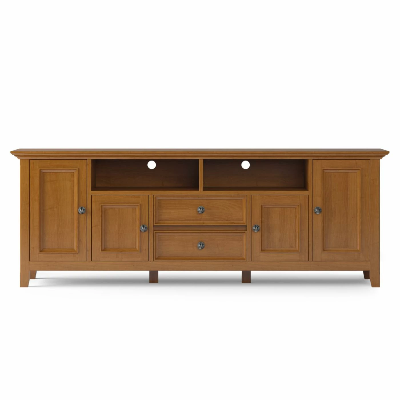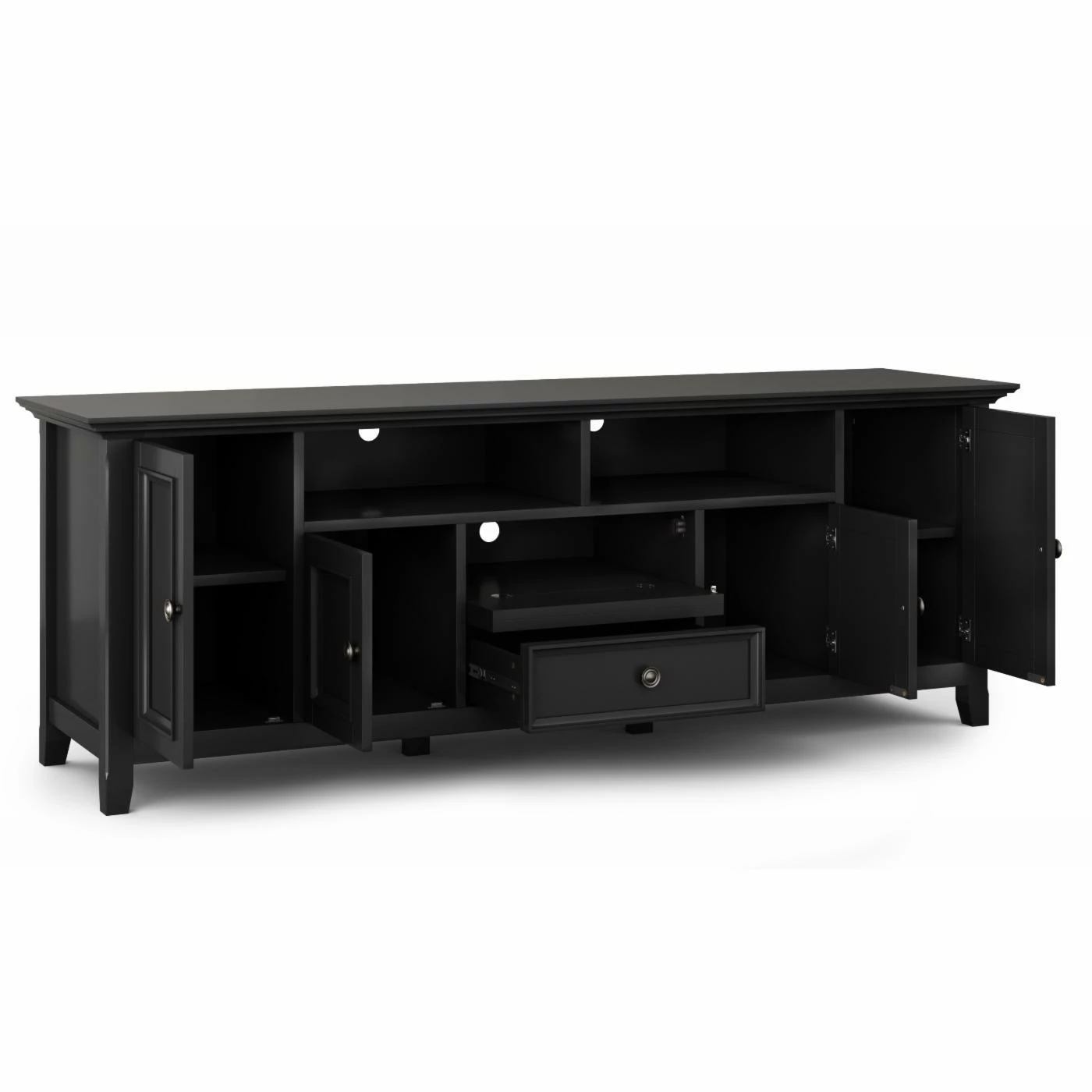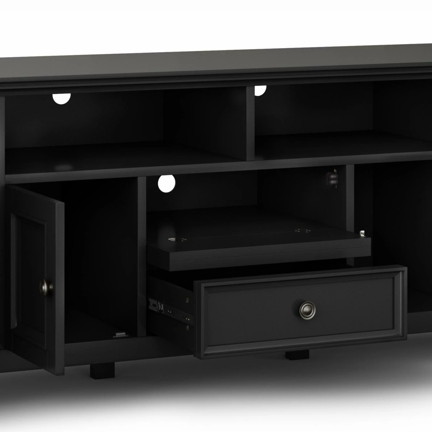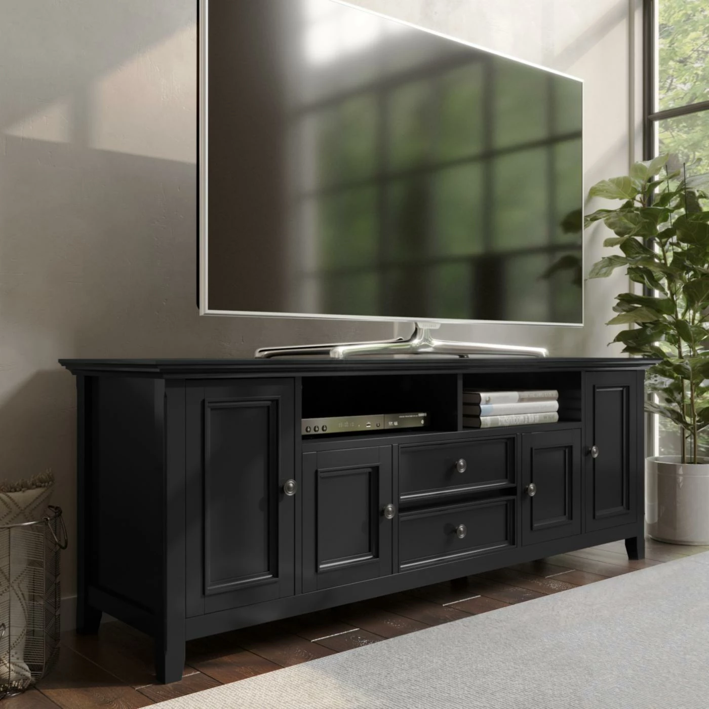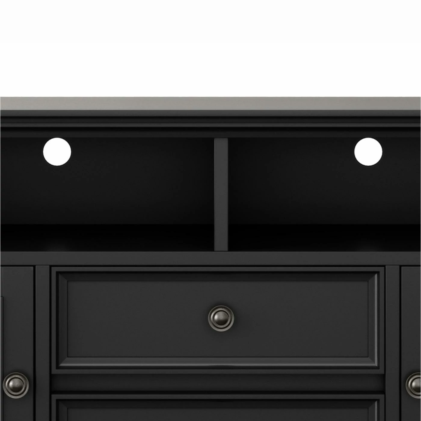Create the ideal viewing area for your television with the Brooklyn & Max Washington Transitional TV Stand. This TV stand holds flat screen TVs up to 80 in. It has a 26 in. height which helps create a more comfortable viewing from your seat. The TV stand includes optimal storage and space for all your media and gaming devices. Open spaces have media cord cut outs for cord management. It also has enclosed drawers and storage areas with adjustable shelves.