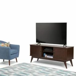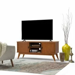 It’s easy to emulate mid-century style when you have the Brooklyn + Max Baxter Solid Hardwood Mid-Century TV Media Stand in your living room. This timeless piece is made of rubberwood and plywood. Store your media components behind the two sliding doors with two adjustable shelves to customize your storage needs.