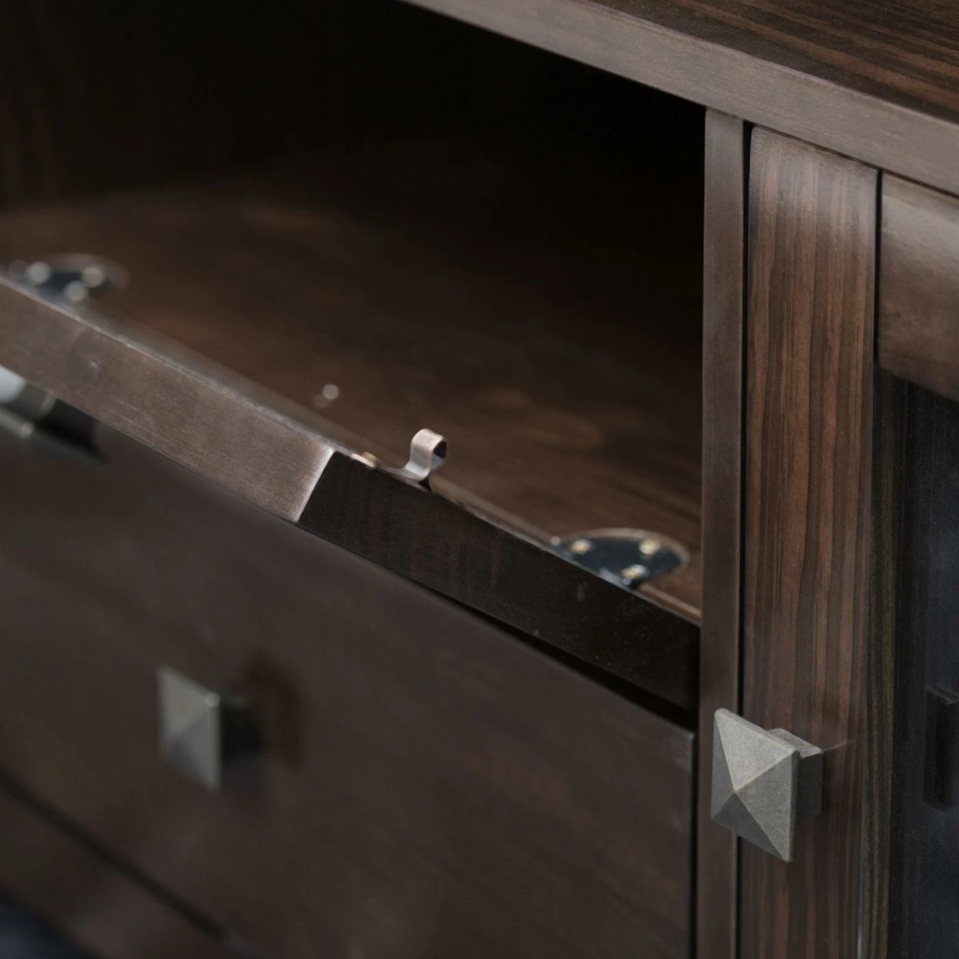 - 2 drawers with open shelving in center