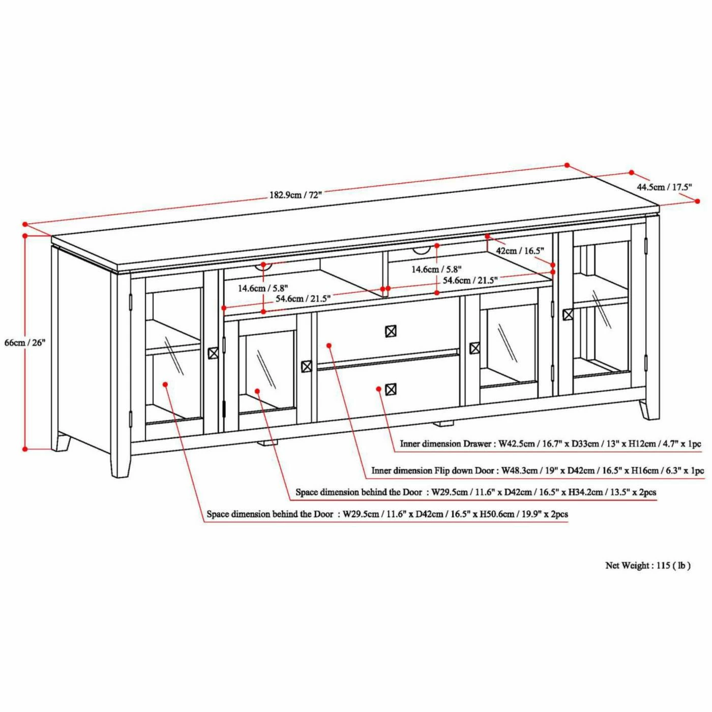 - Dimensions: 72W x 17.5D x 26H in.