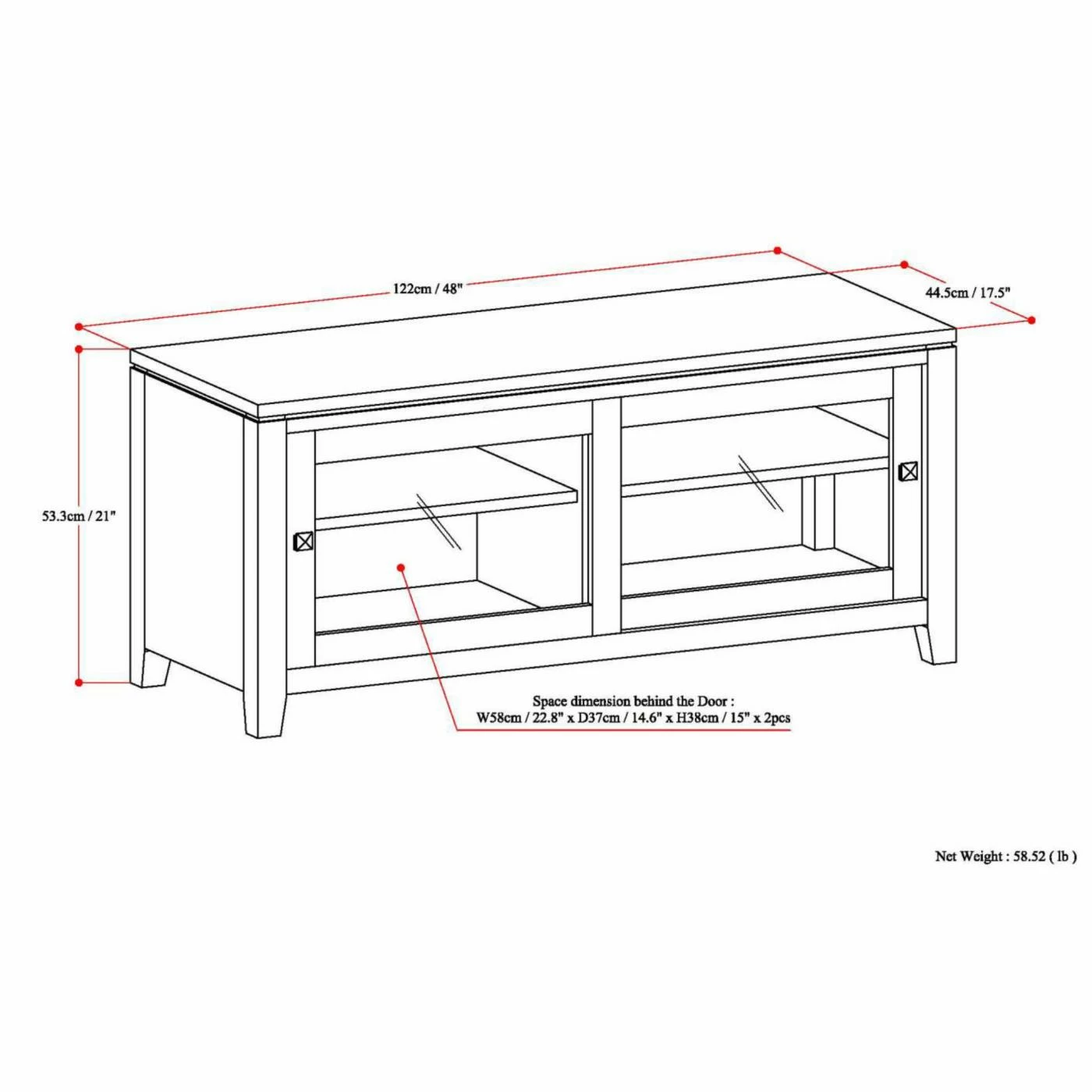 - Dimensions: 48W x 17.5D x 21H in.