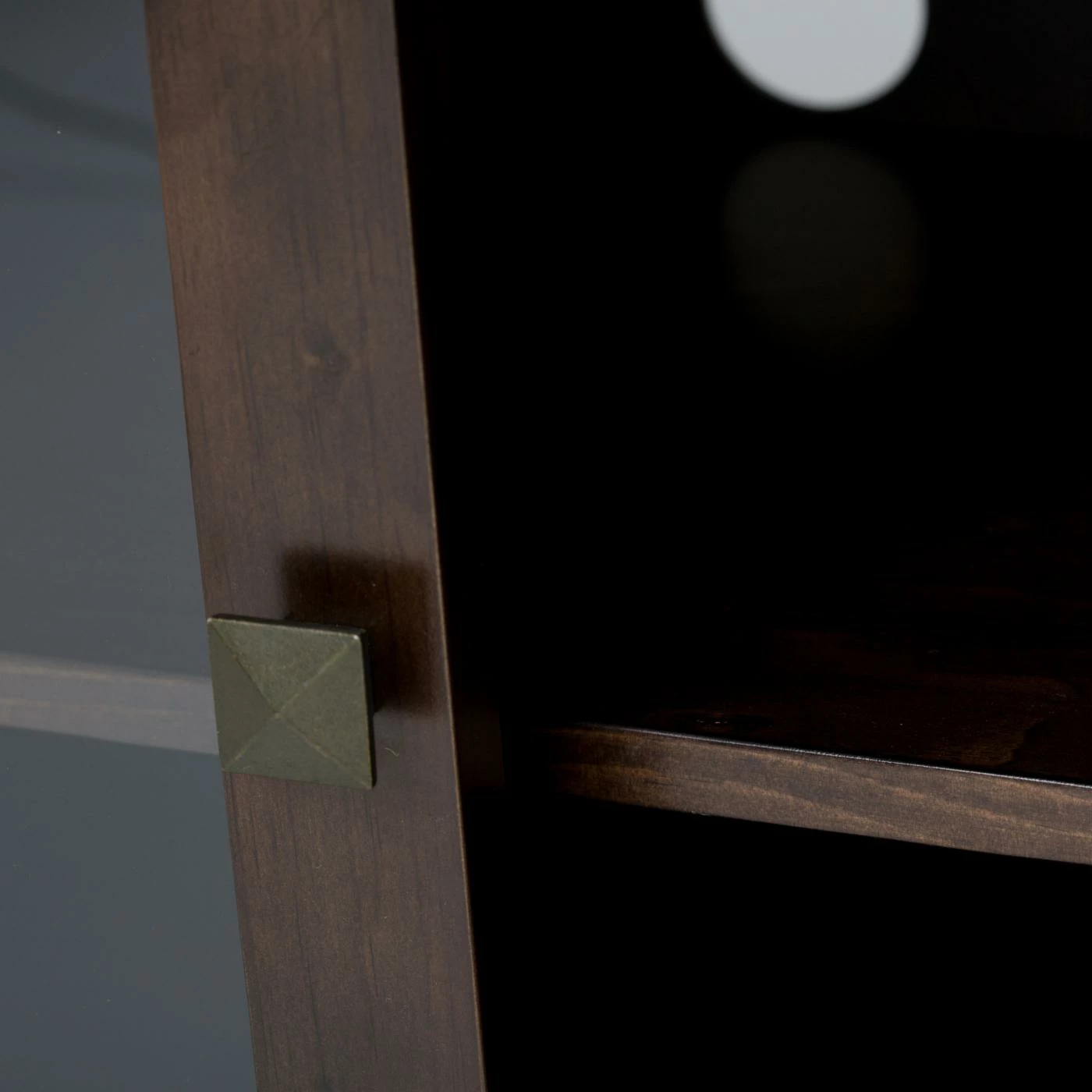 - Dark mahogany finish