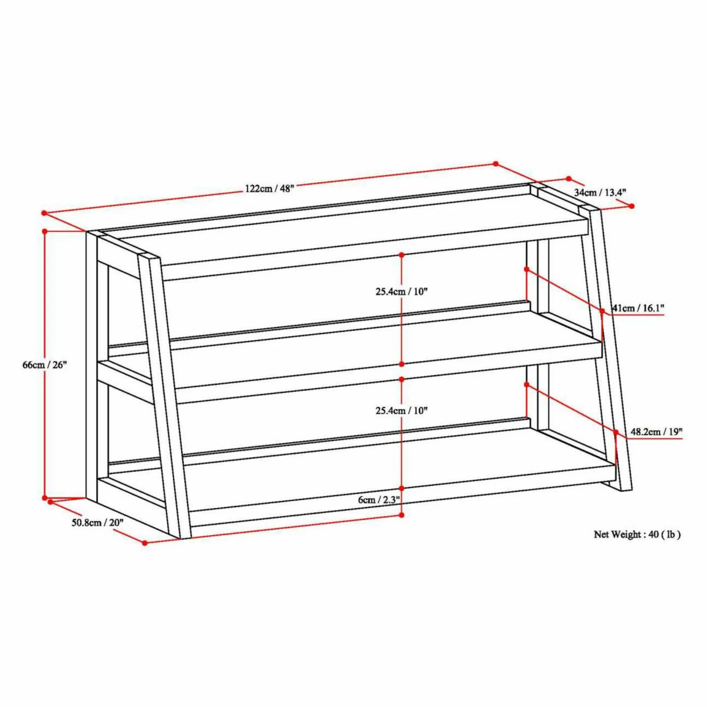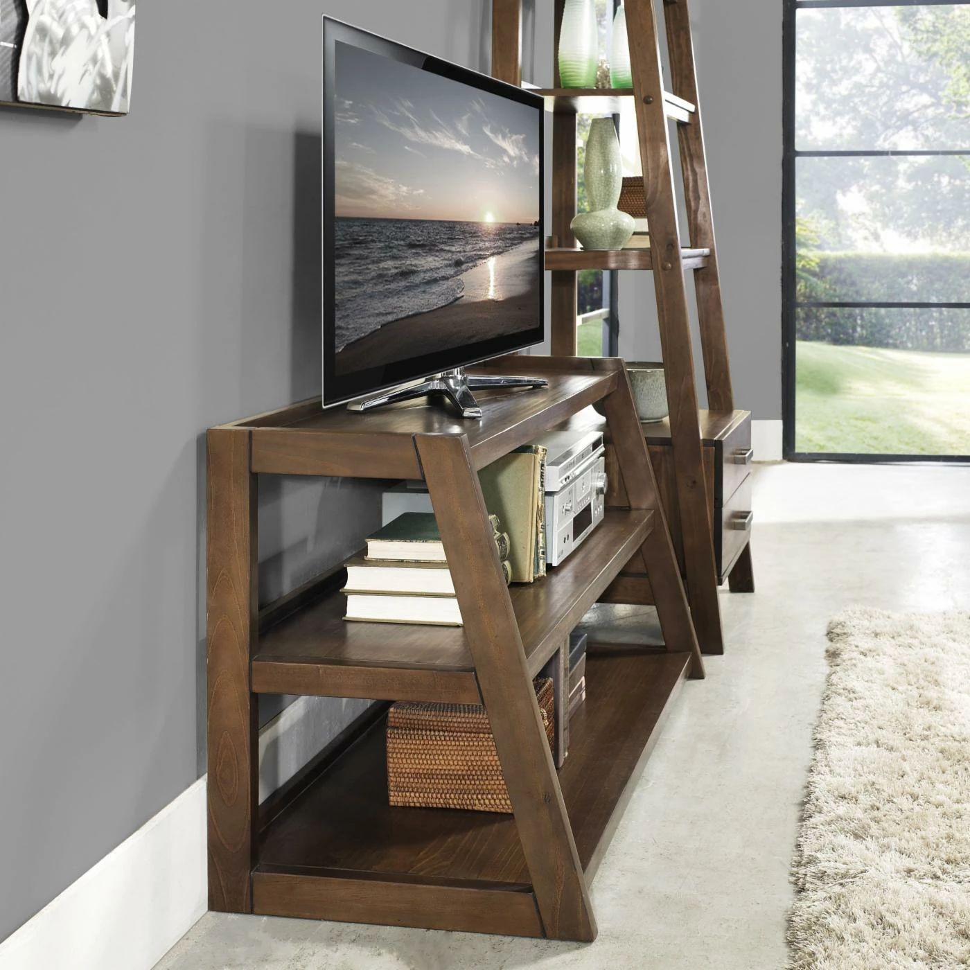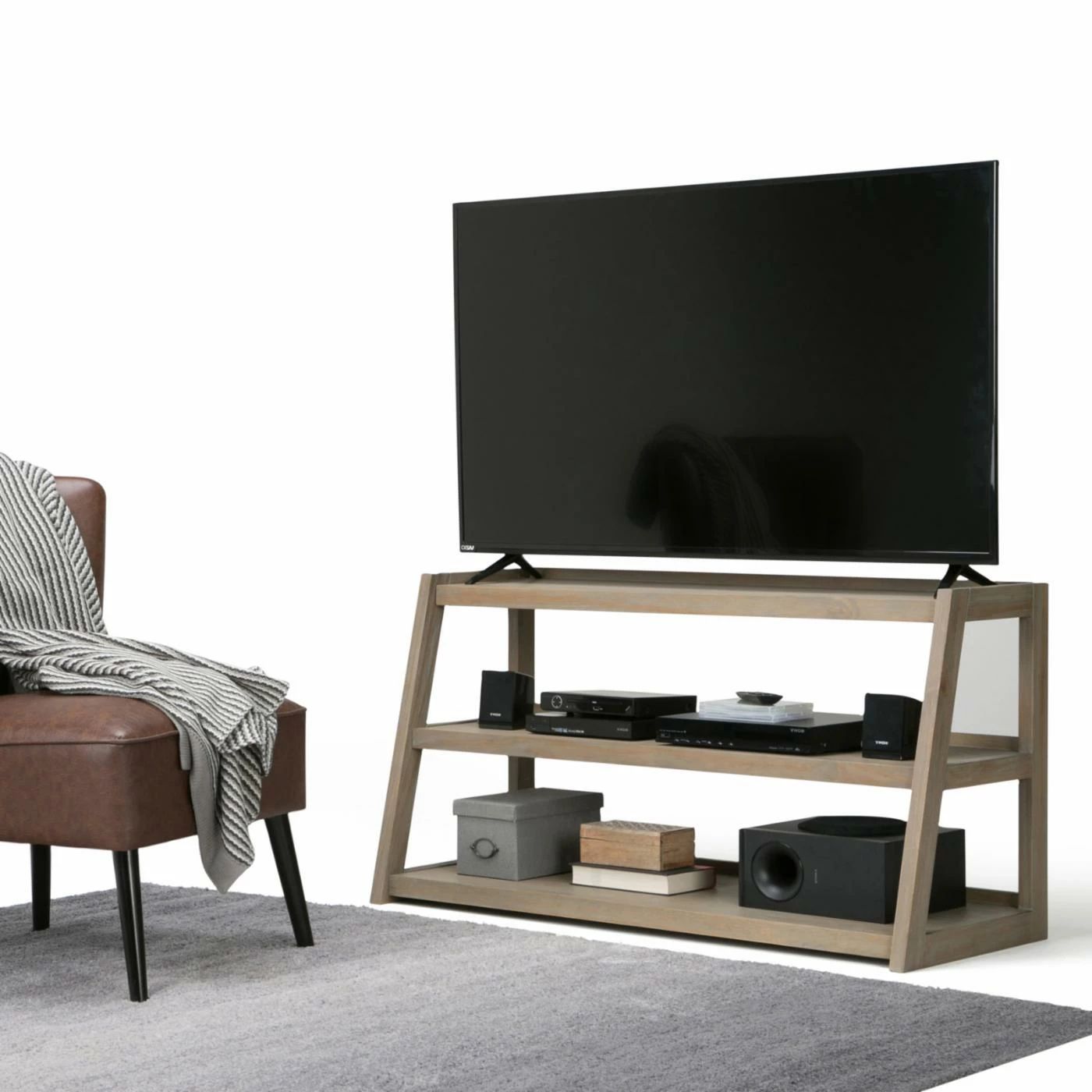 With no further ado, we introduce the Brooklyn + Max Spokane 48 in. TV Stand. With refreshingly simple industrial styling and beautiful solid pine planks treated in your choice of hand-applied finishes, this TV console is ideal for flat panel TVs up to 53 inches. Two shelves offer space for your media devices, display items, and more.