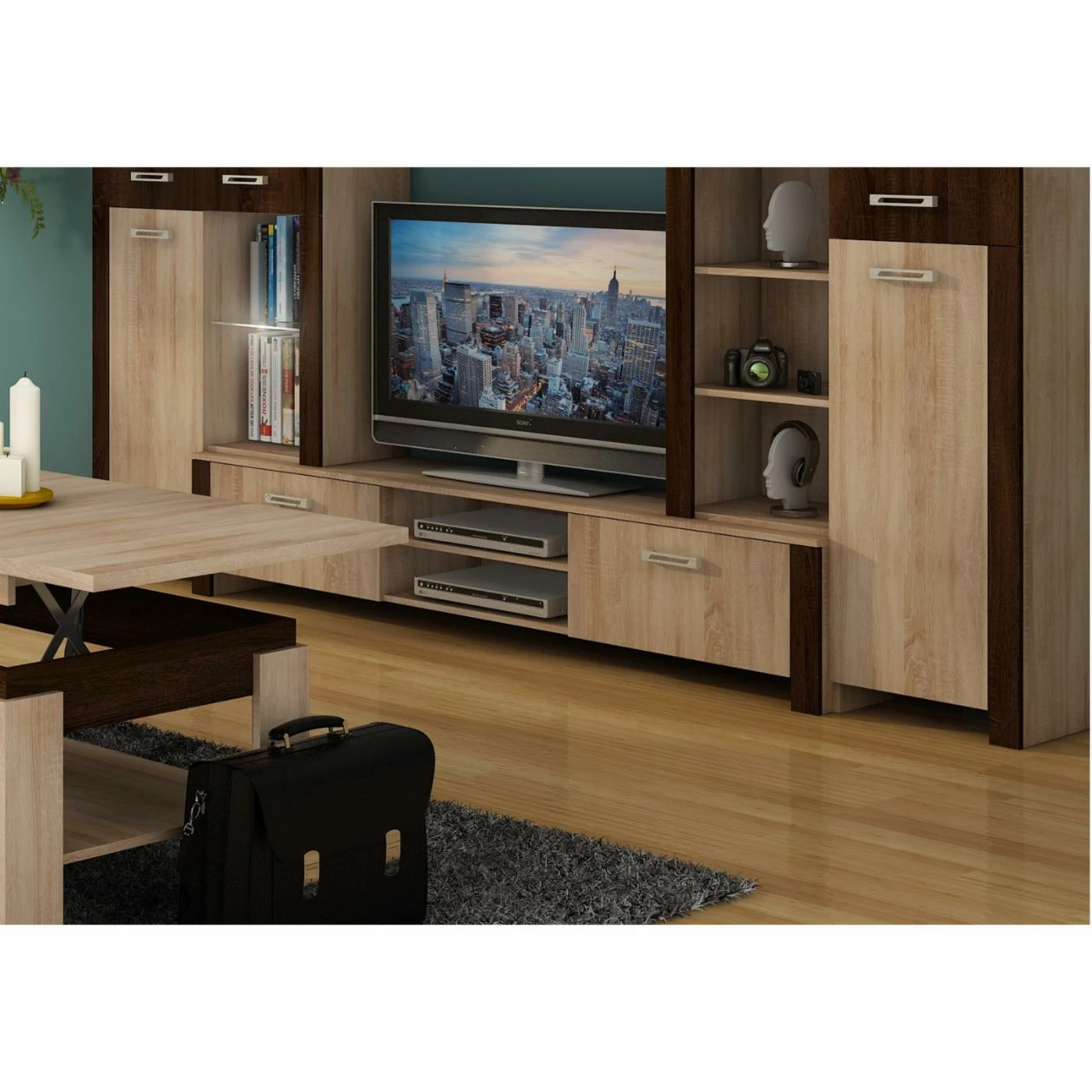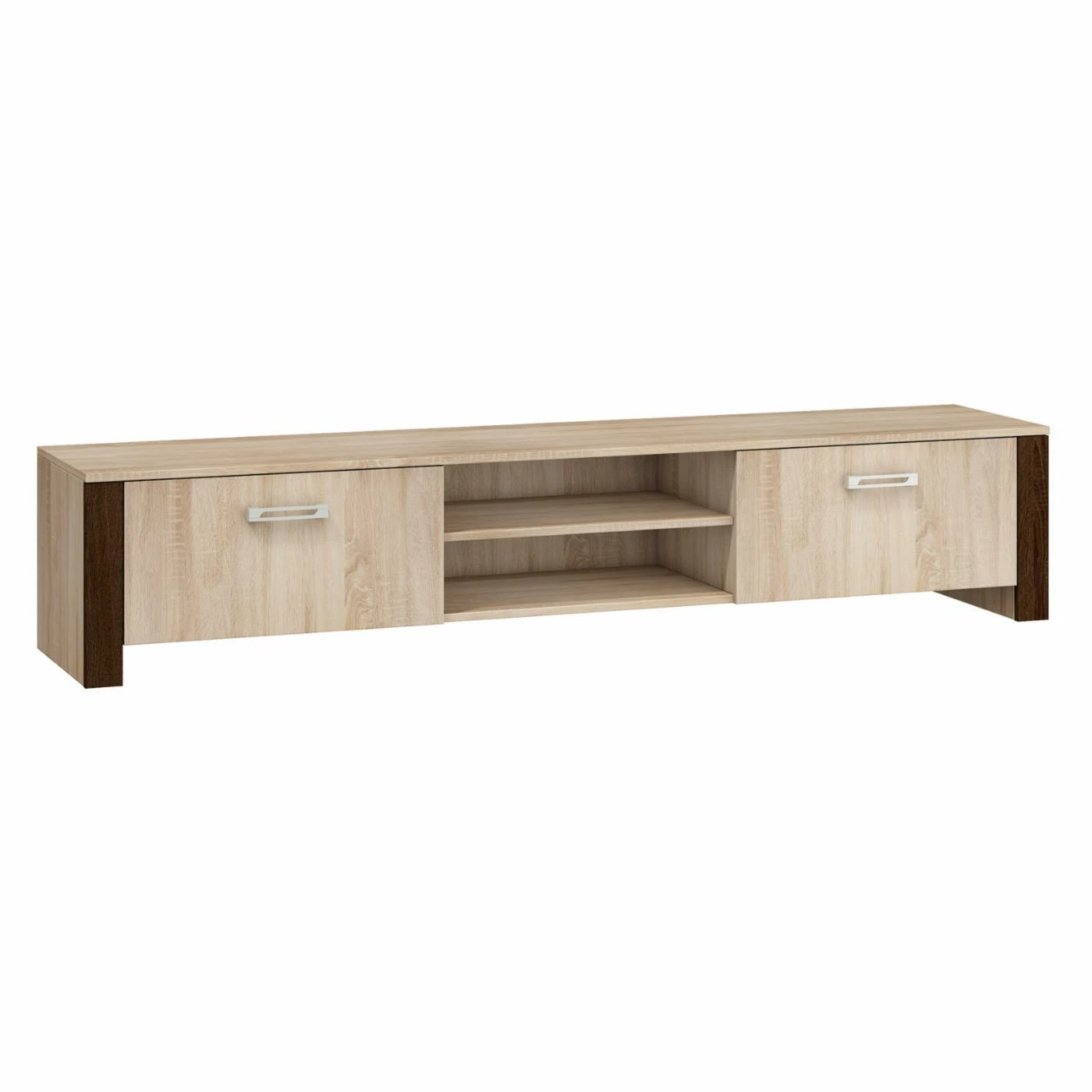 The Furniture Agency Hugo 78 in. TV Stand meshes together modern style and traditional look for something altogether different. This TV stand is crafted of engineered wood with complementary natural brown shade finishes. The 2 exposed shelves and 2 cabinets offer ample storage space for streaming boxes, gaming consoles, DVD or Blu-ray players, movies, games, and magazines. This stand can support television screens up to a width of 85 inches.