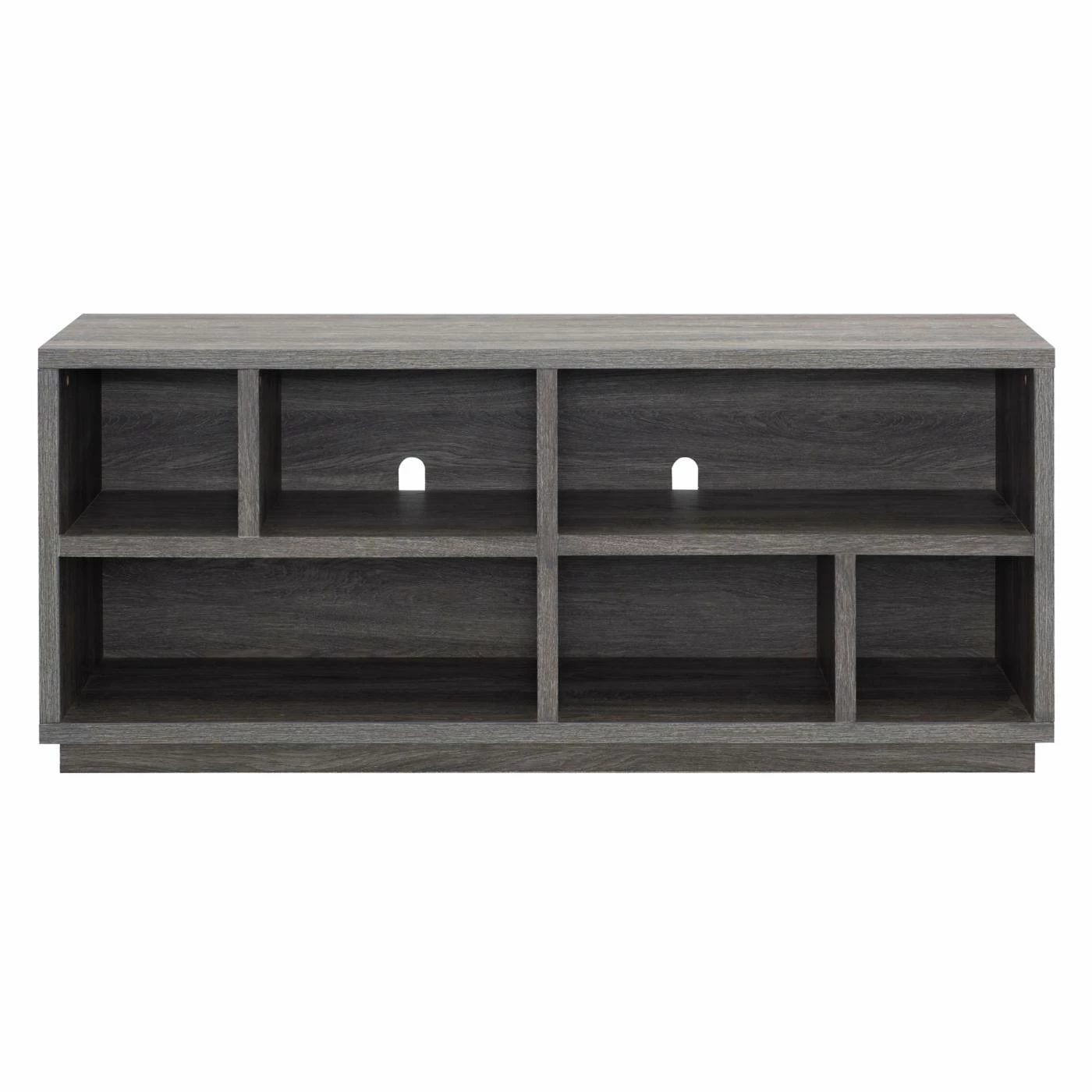 A must-have for living areas and entertainment spaces, this TV stand sets the stage for the big game, a movie marathon, or that season finale everyoneβs been talking about. Its rich wood tone creates a warm neutral palette that will blend seamlessly into any color scheme, while its classic transitional styling can pair perfectly with the existing design inspiration of your living room, den, or game room. This solid-backed stand also features cable management cut-outs to keep all your media wiring neatly organized.