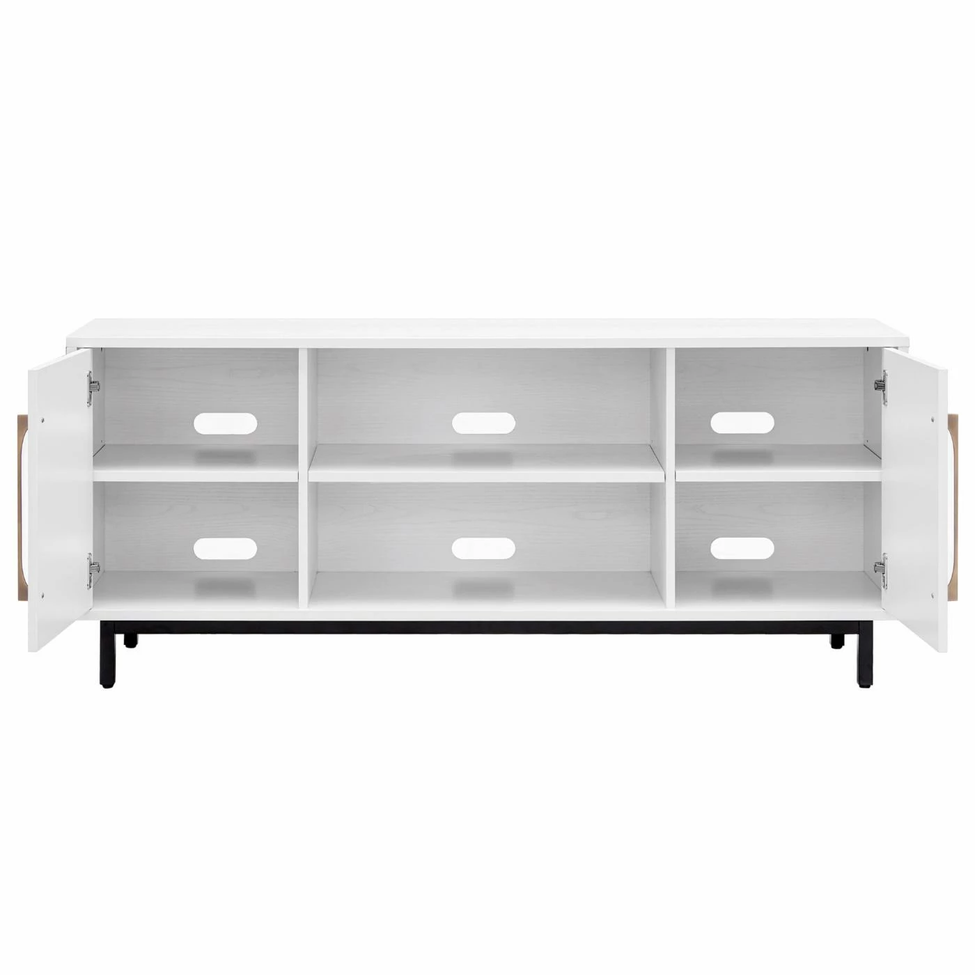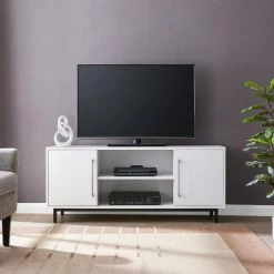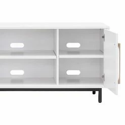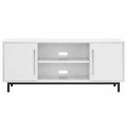 - A mid-century modern design accommodates TVs up to 65 in. for your entertaining space