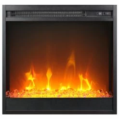 - Fireplace insert features 4777 BTUs (heat coverage for 400 sq. feet) and an automatic temperature cut-off for safety.