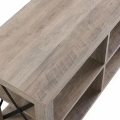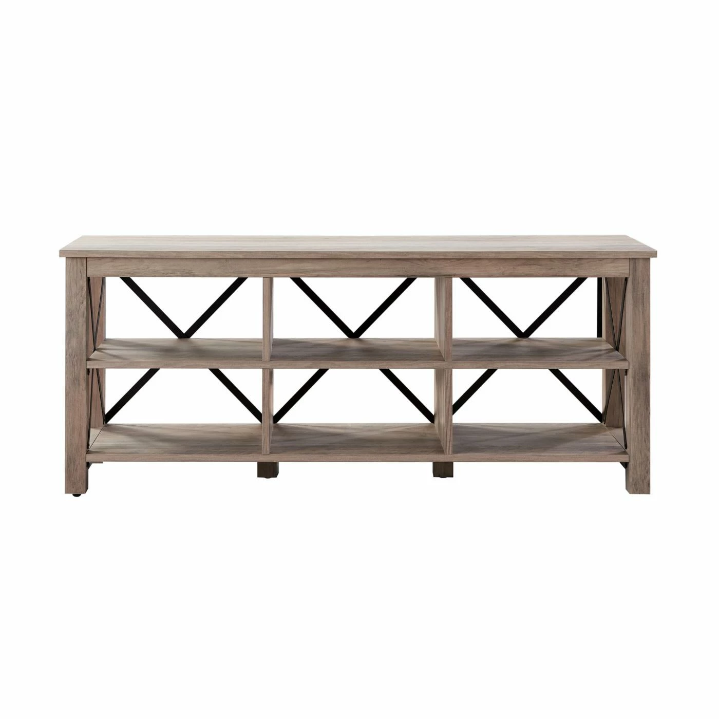 Strong geometric lines set this modern farmhouse-inspired TV stand apart. Its X-shaped black metal accents offset the rich wood tone, creating a warm neutral color palette that will blend seamlessly into any design scheme. A must-have for living areas and entertainment spaces, this TV stand sets the stage for the big game, a movie marathon, or that season finale everyoneβs been talking about.