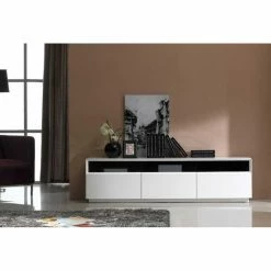 Whether you entrust your TV and media devices to the J&M Furniture W TV023 TV Stand or use it as a low storage unit beneath a treasured work of art, youโll appreciate the level of polish and craftsmanship. Three deep drawers run on imported soft-closing glides. Media devices and game consoles stay protected while allowing IR signals from your remote control to pass through smoked glass doors. The rear panel of this unit features pre-cut access ports for ventilation and cables.