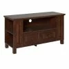 The Monarch 48 in. TV Console is the perfect fit for those media lovers who arenβt too flashy, but want a sleek and sophisticated place to keep your media organized. This beautiful console is constructed of durable particle board and laminate available in your choice of finish. It features tapered legs and a wide surface that offers plenty of room for your television up to 53 inches. The three open shelves in the center are ideal for placing electronic components, and the upper two are adjustable for your convenience. Store your movies, games, books, or decorative pieces on the consoleβs outer shelves. With open-concept storage, clean lines and ample space for all your media needs, this console is the perfect finishing touch for any style home.