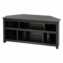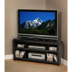 Sometimes your home just doesn’t want to cooperate, but with a versatile unit like the Vasari Corner TV Console β Black, you can create the entertainment spot you’ve been wanting in almost any room. Able to support flat-panel TVs up to 150 lbs., this rugged corner console is crafted from composite-woods that are covered in a jet black laminate. A engineered wood backer helps add strength and rigidity so you can enjoy the six different storage compartments with room enough for all your AV components and gaming needs. This console assembles easily with minimal tools.
