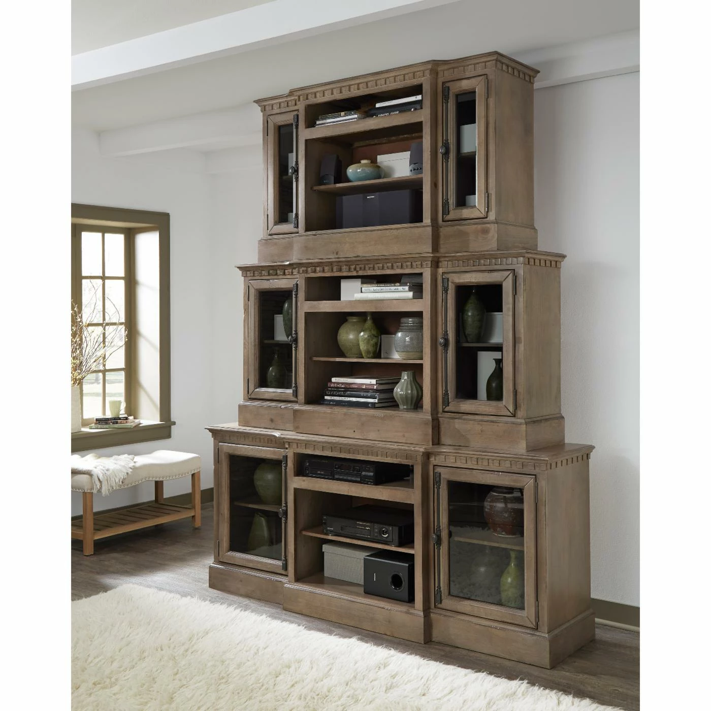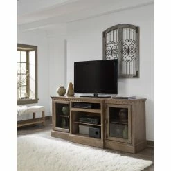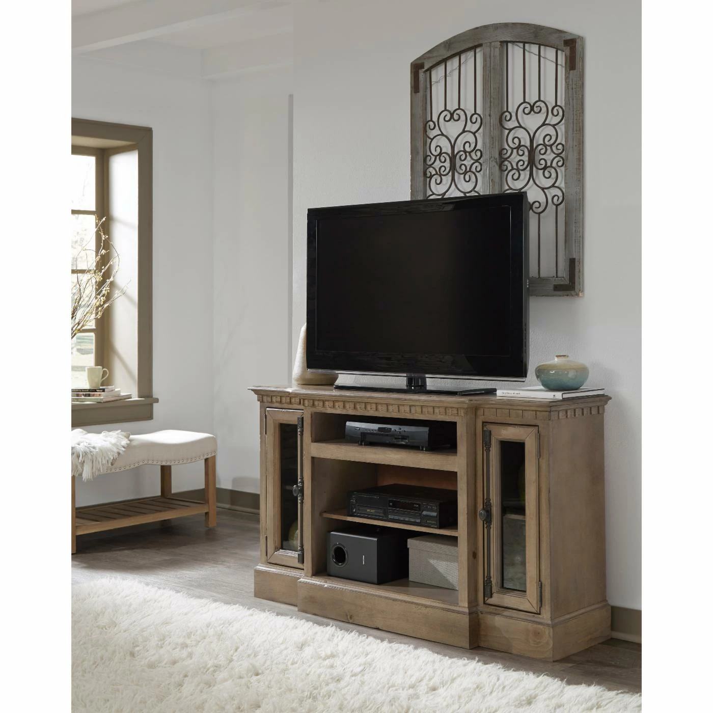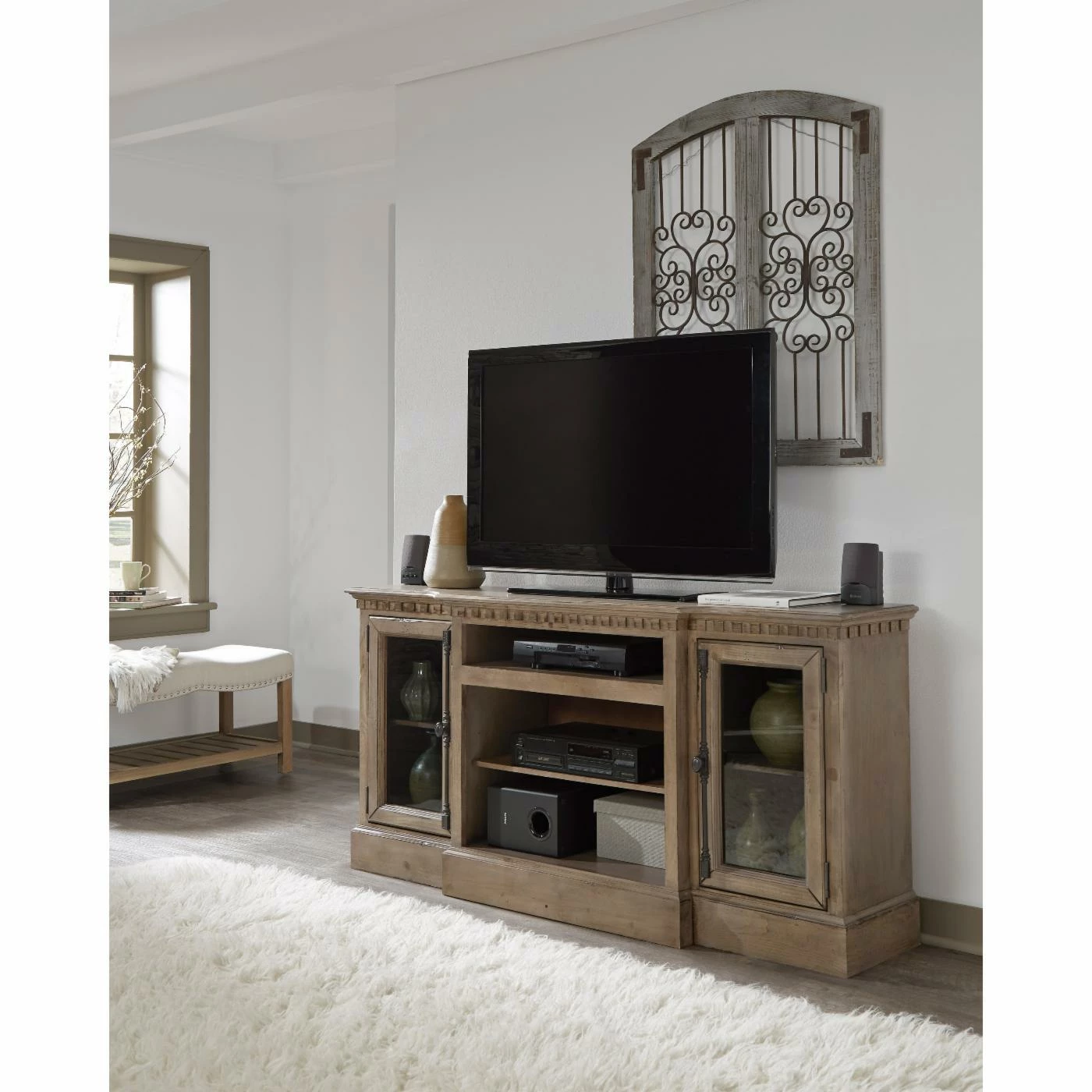 Outfit your entertainment space with the Progressive Andover Court TV Stand for a sophisticated, elegant charm. Hand-made with premium pine woods and veneers in a traditional style with framed panels, raised panels, and dentil molding, the aesthetic splendor of this piece is underscored by its multi-step, hand-applied finish. And with both open and adjustable shelving, as well as grommet holes for wire management, this piece’s utility is second to none. Framed glass and bronze hardware only adds to its luxury. Choose from available sizes to best match your home vision.