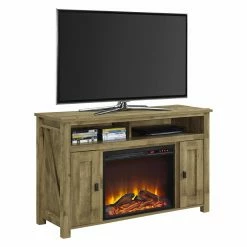 Warm up your living area with a cozy glow and charming country style, thanks to the Altra Furniture Farmington 50 in. Electric Media Fireplace – Heritage Light Pine. This stunning electric fireplace adds a rustic sense of elegance to your living area with a farmhouse-inspired design and weathered, light-brown woodgrain finish. The remote-controlled spacious, 23-inch firebox gives off the realistic glow of a wood burning flame without all the cleanup and work.