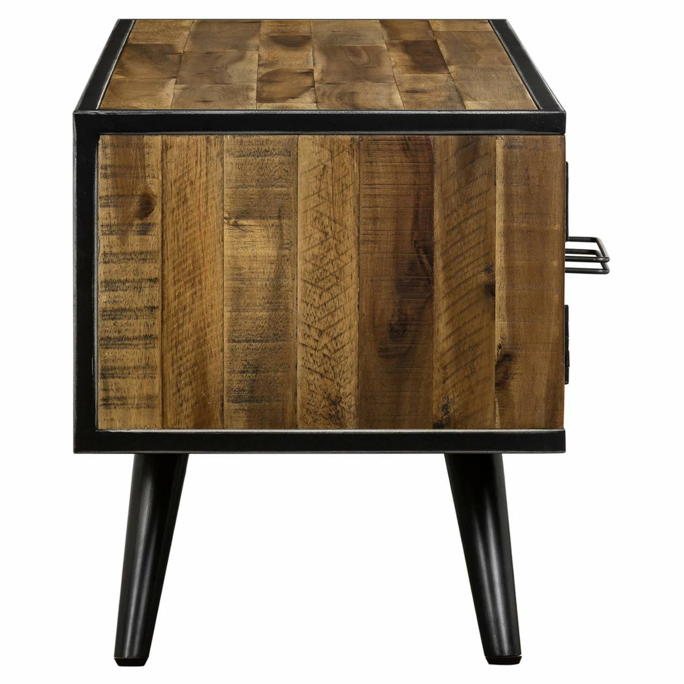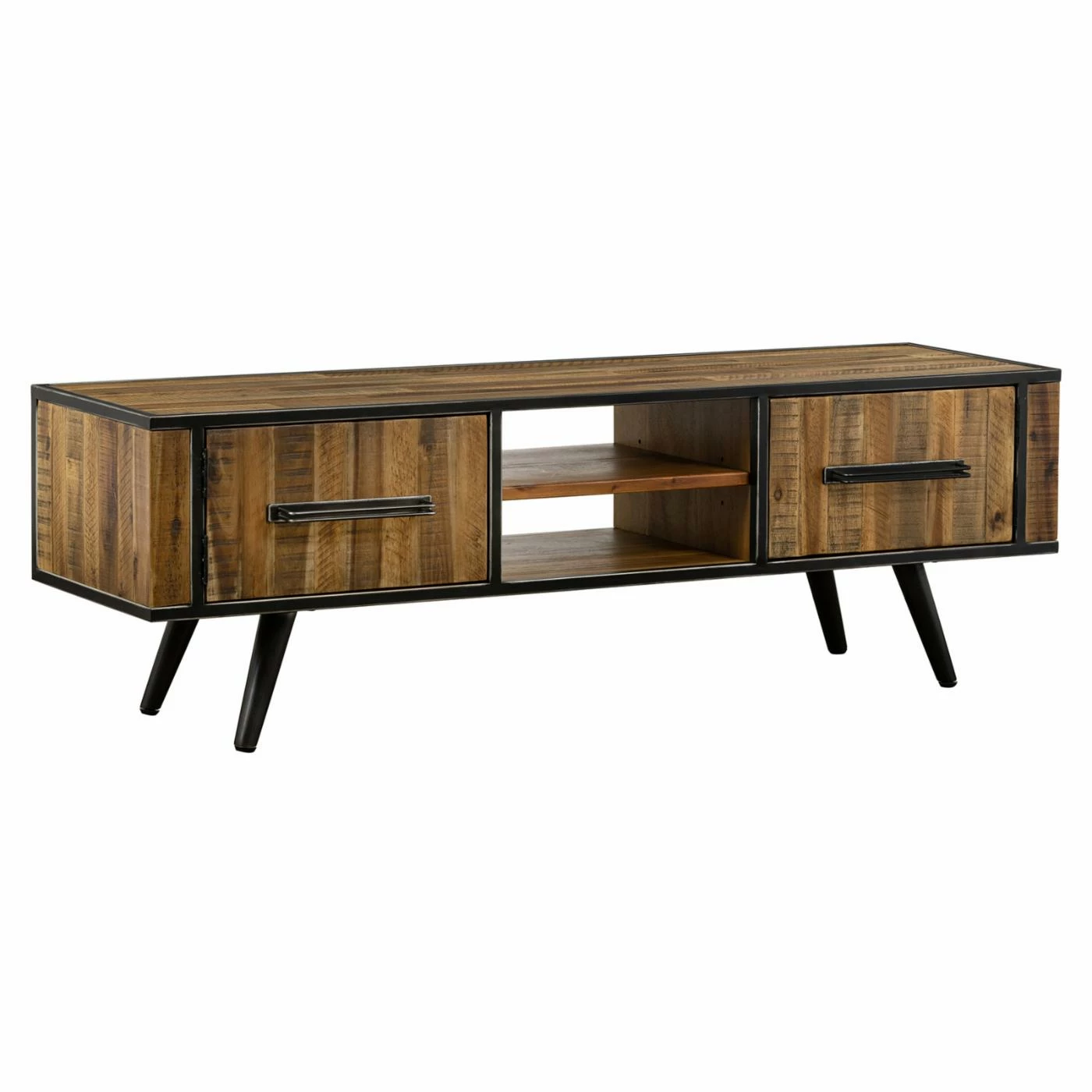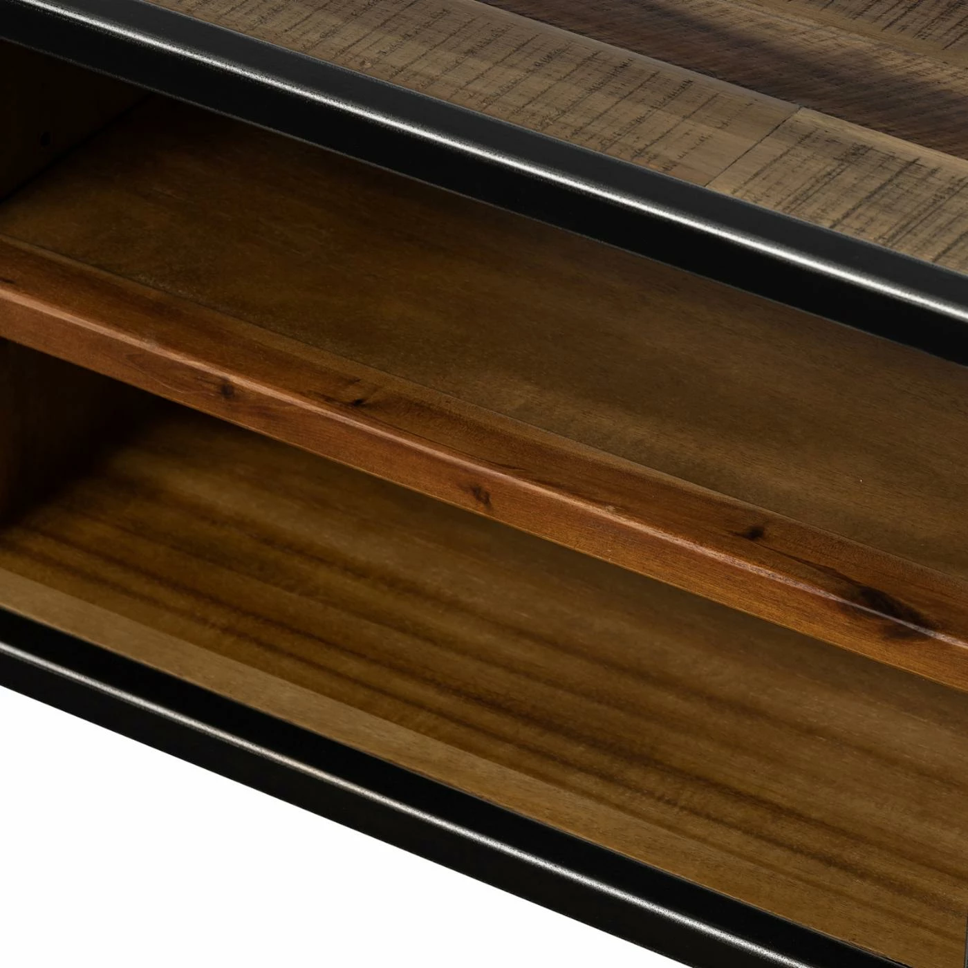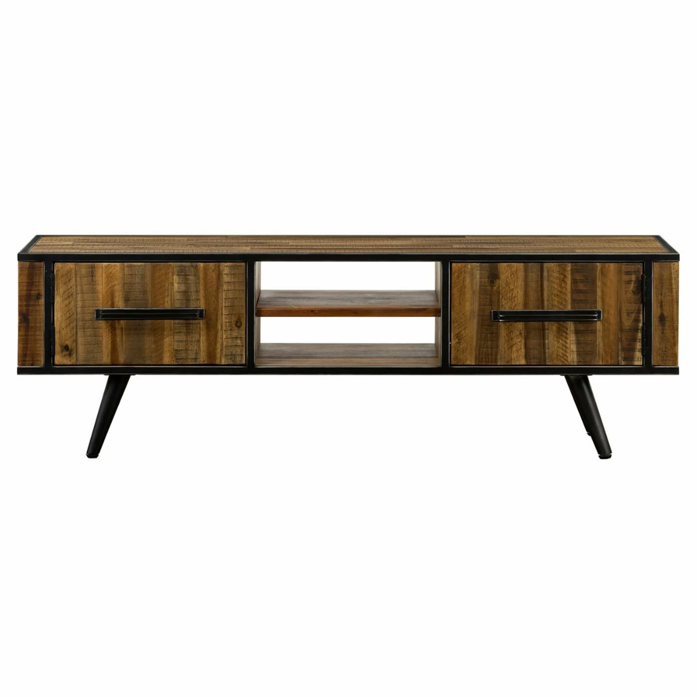 The Armen Living Cusco 2 Door TV StandΒ is a great fit in any size home. 59 inches in width, this can accommodate up to a 64-inch TV. The metal accents contribute to the modern design but are softened by the warm antique acacia finish. The Cusco collection expands to multiple rooms in your home. Coordinating bedroom, living room and dining room pieces not included. All available in an antique acacia finish with black metal accents.
