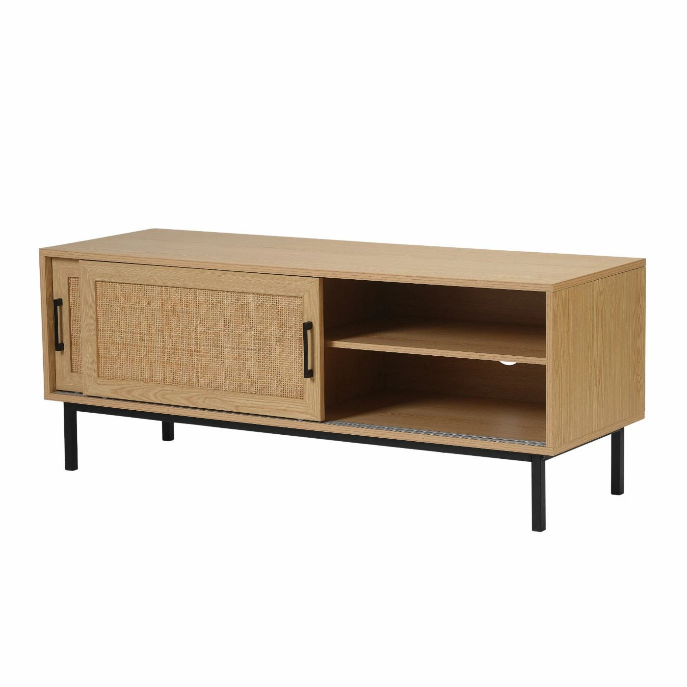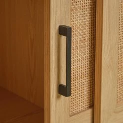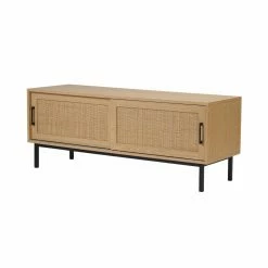 For a unique accent to your entertainment area, the Harvey Media Console offers a clean-lined modern cabinet with midcentury-style cane front. Sliding doors and adjustable shelves hide tech necessities while providing easy access to your media equipment. The Harvey Media Console will be right at home in your family room, media room, or office.