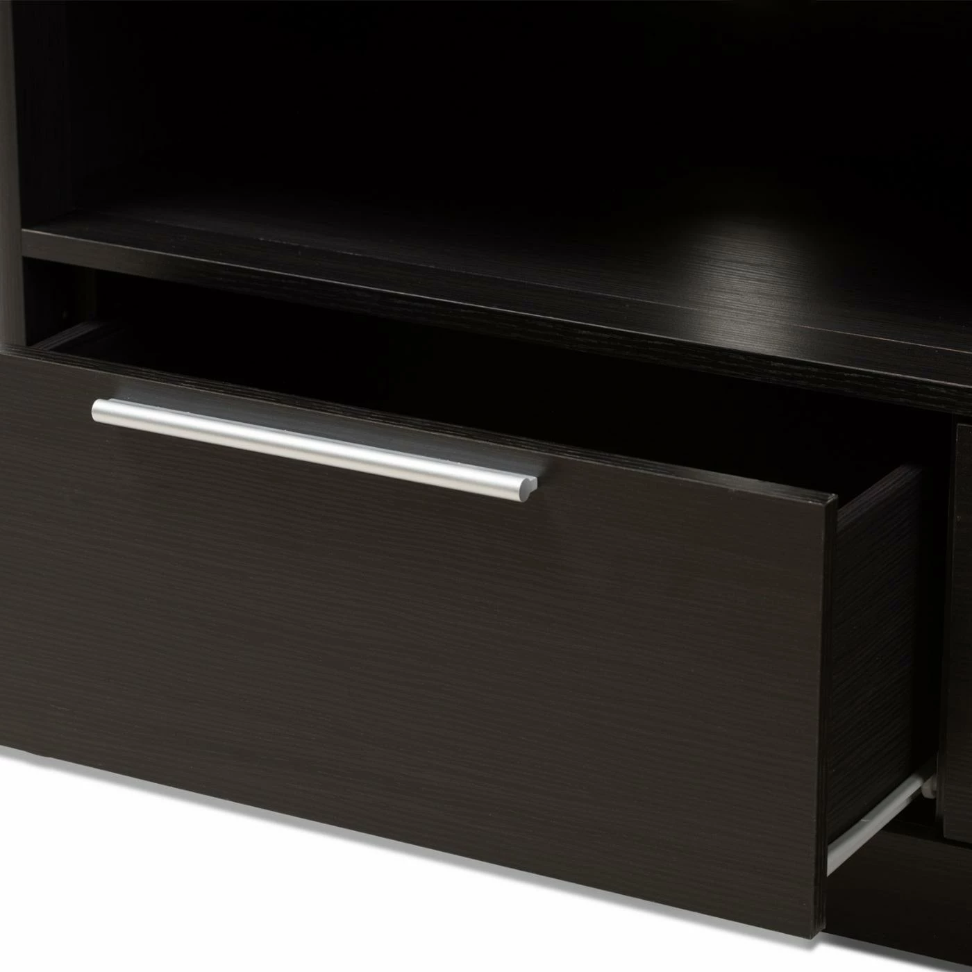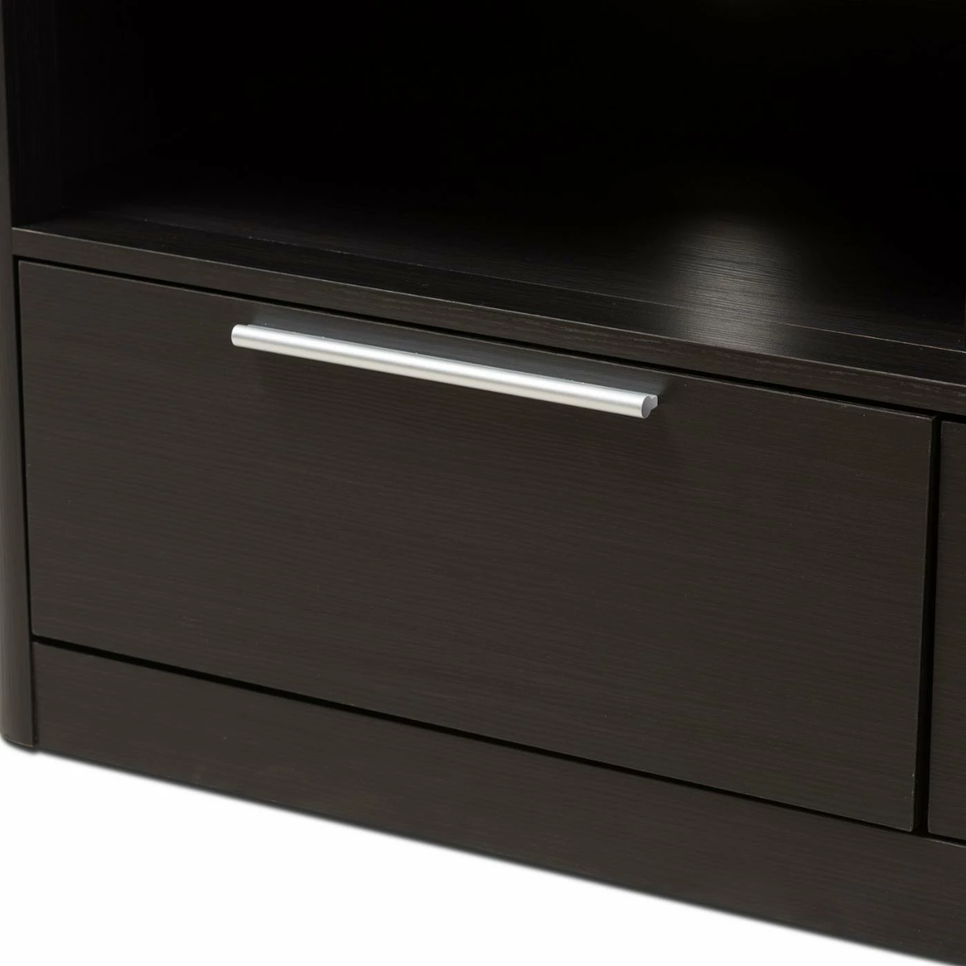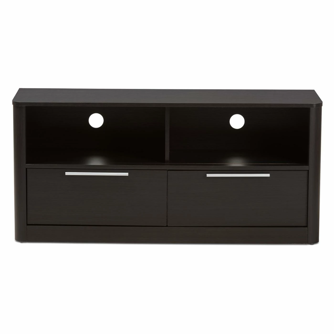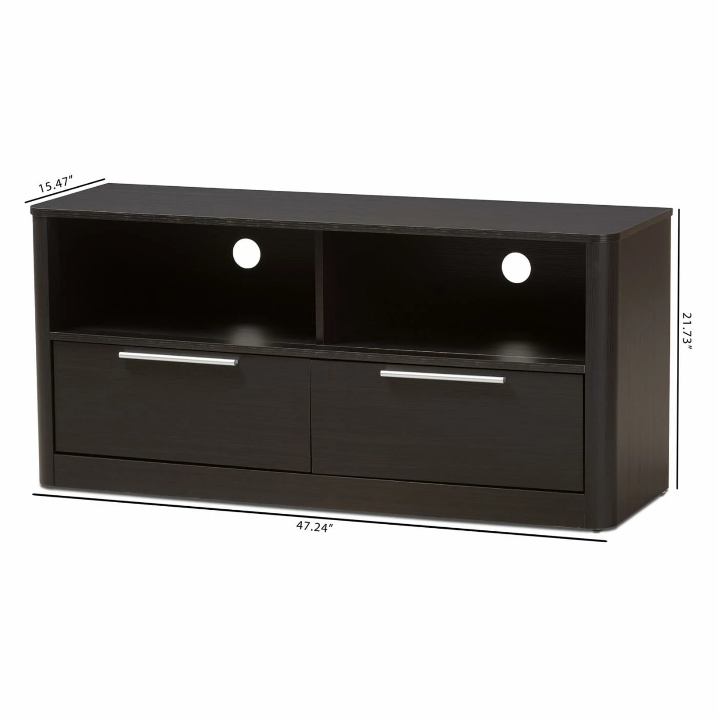 Give your entertainment area a makeover when you add the Baxton Studio Carlingford Modern and Contemporary Wood 2-Drawer TV Stand. This sturdy engineered wood TV stand offers plenty of storage for consoles and media with two open shelves and two drawers. Cord management holes in the back keep things neat. Choose the available finish option that suits your dรฉcor.