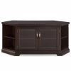Four open shelves in the middle of the Baxton Studio Quinn Mid-Century Modern 2 Door Wood TV Stand have media holes that will easily hide and manage the cords of your devices. Two doors with long handles open to even more storage for your blankets, board games, or DVDS. This TV stand is constructed from engineered wood with a two-tone walnut and white finish. The tapered legs in walnut add to the mid-century modern feel of this entertainment stand.