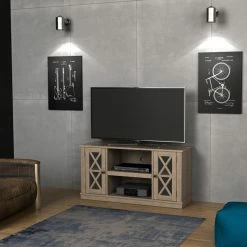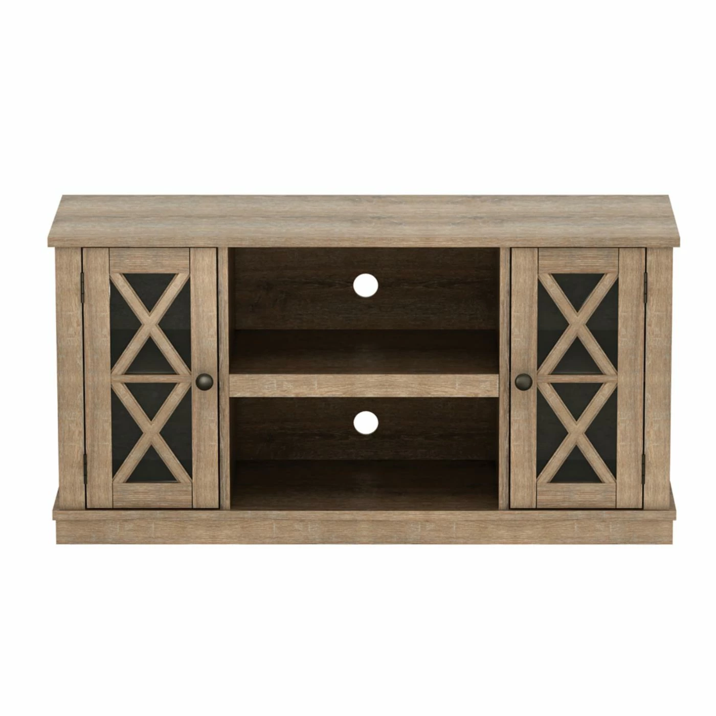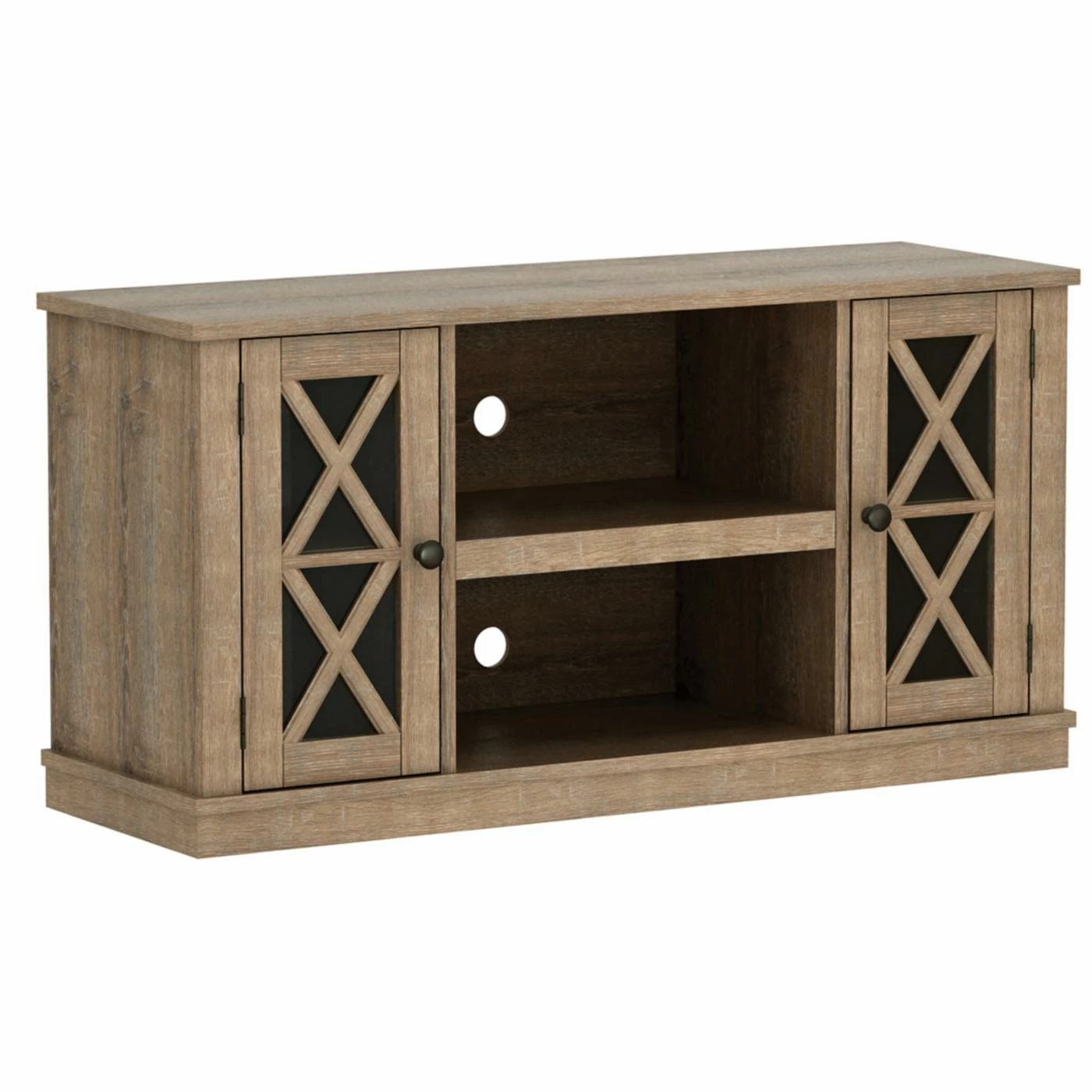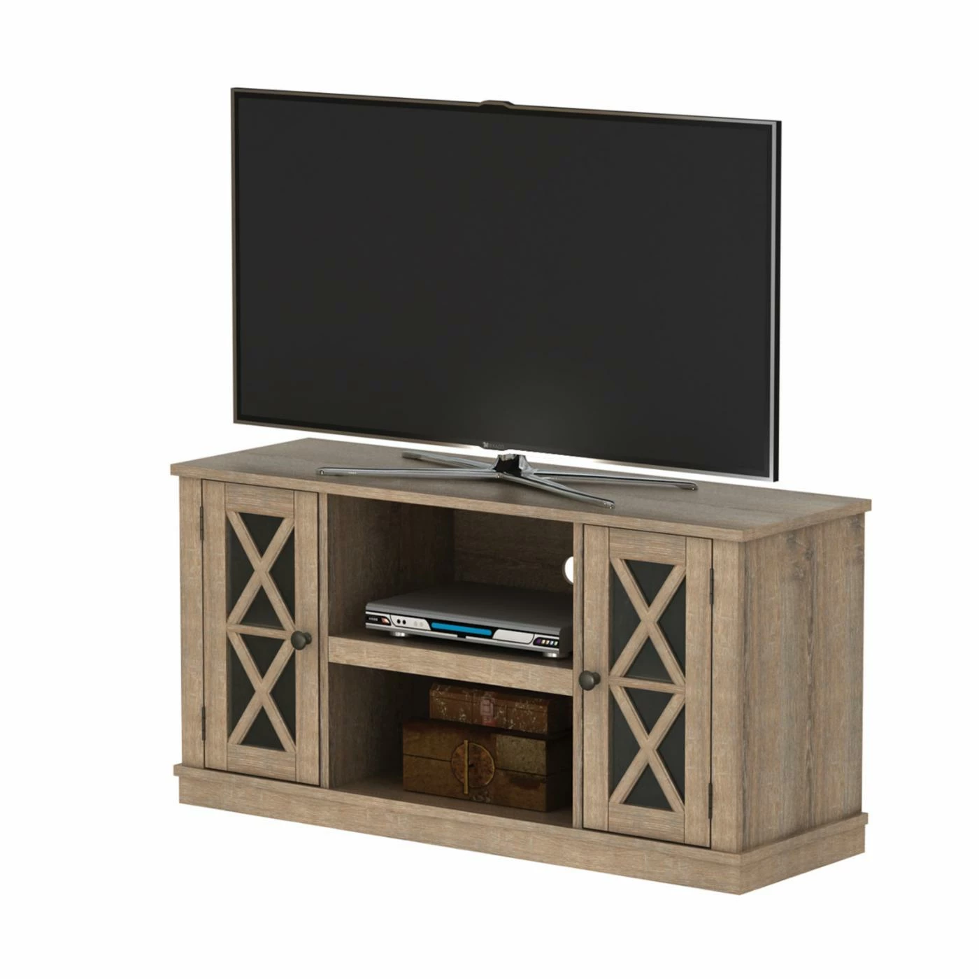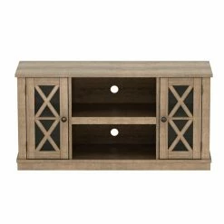 The BellO Bayport TV Stand is a TV stand that you can depend on. It provides an organized media center in any room and adds serious style. Crafted from engineered wood, it features a light pine finish and glass door panes. Adjustable shelves and large open cubbies are perfect for DVDs, books, games, consoles, and more. The built-in cable management system maintains an orderly look.