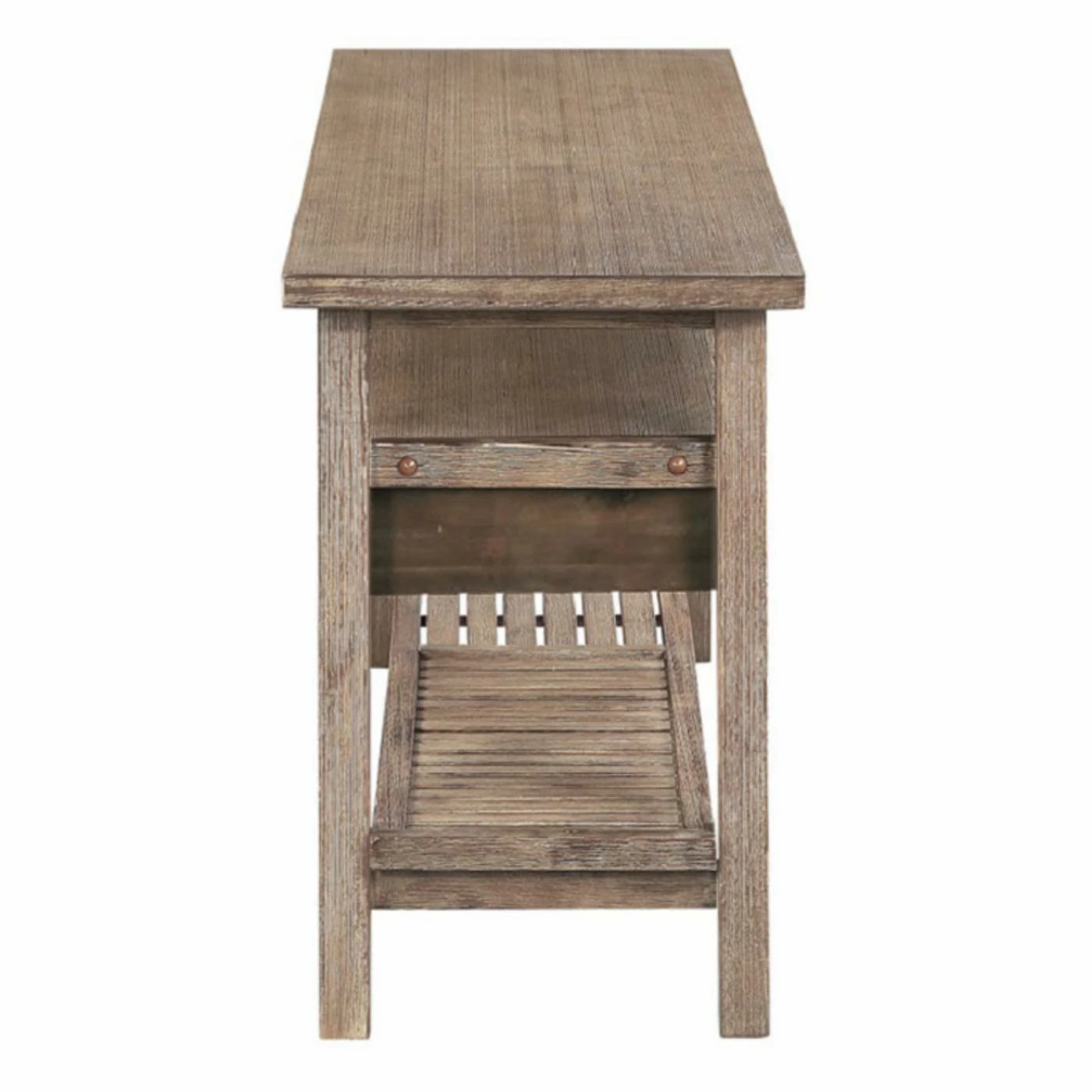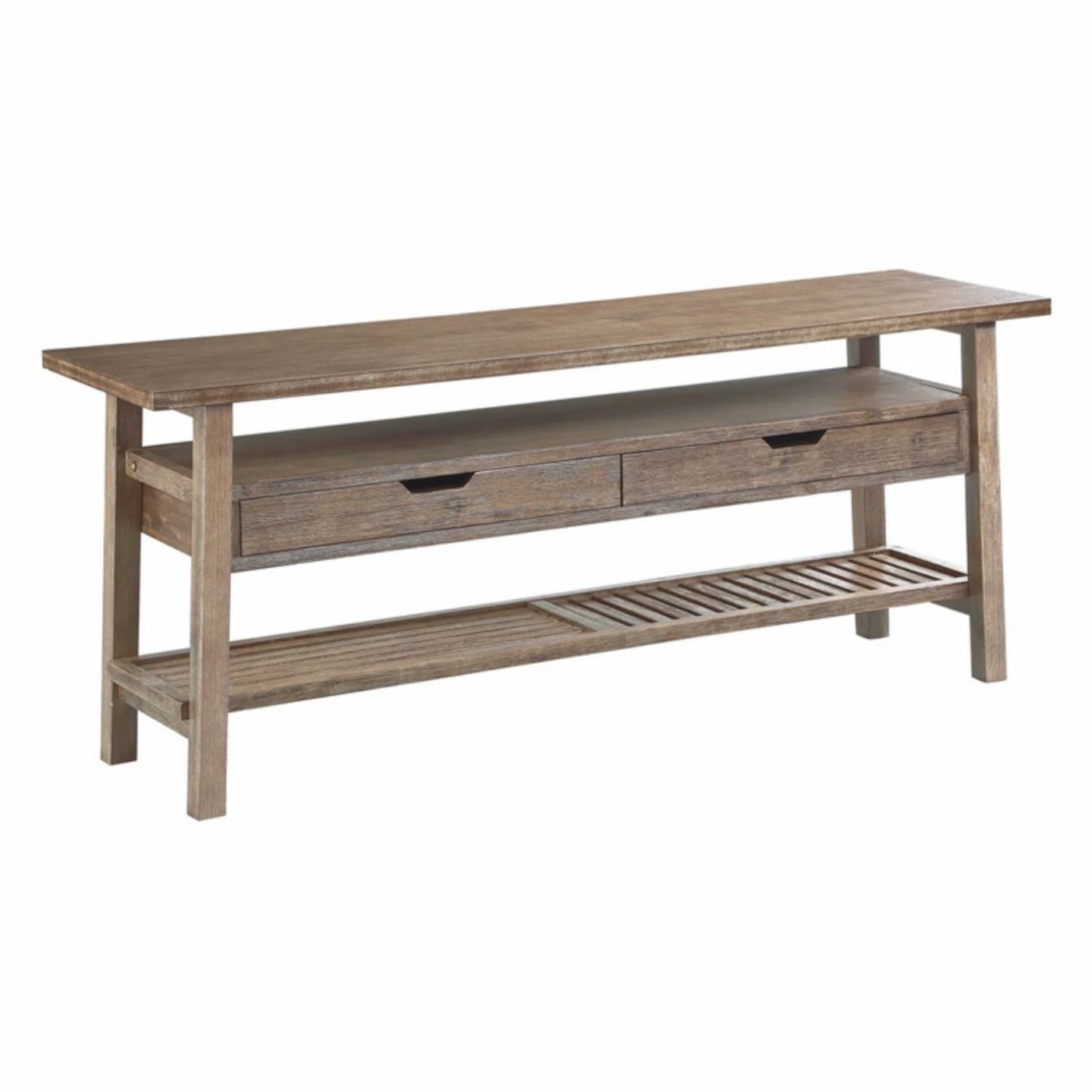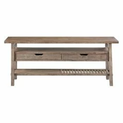 Complete your farmhouse style living room with the Boraam Sonoma TV Stand – Barnwood Wire-Brush. Crafted from acacia wood and engineered wood, this rustic TV stand features a unique slatted lower shelf for visual interest, two storage drawers, and a barnwood wire-brush finish. Pair with other items in the Sonoma collection to complete the look.
