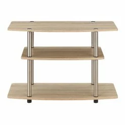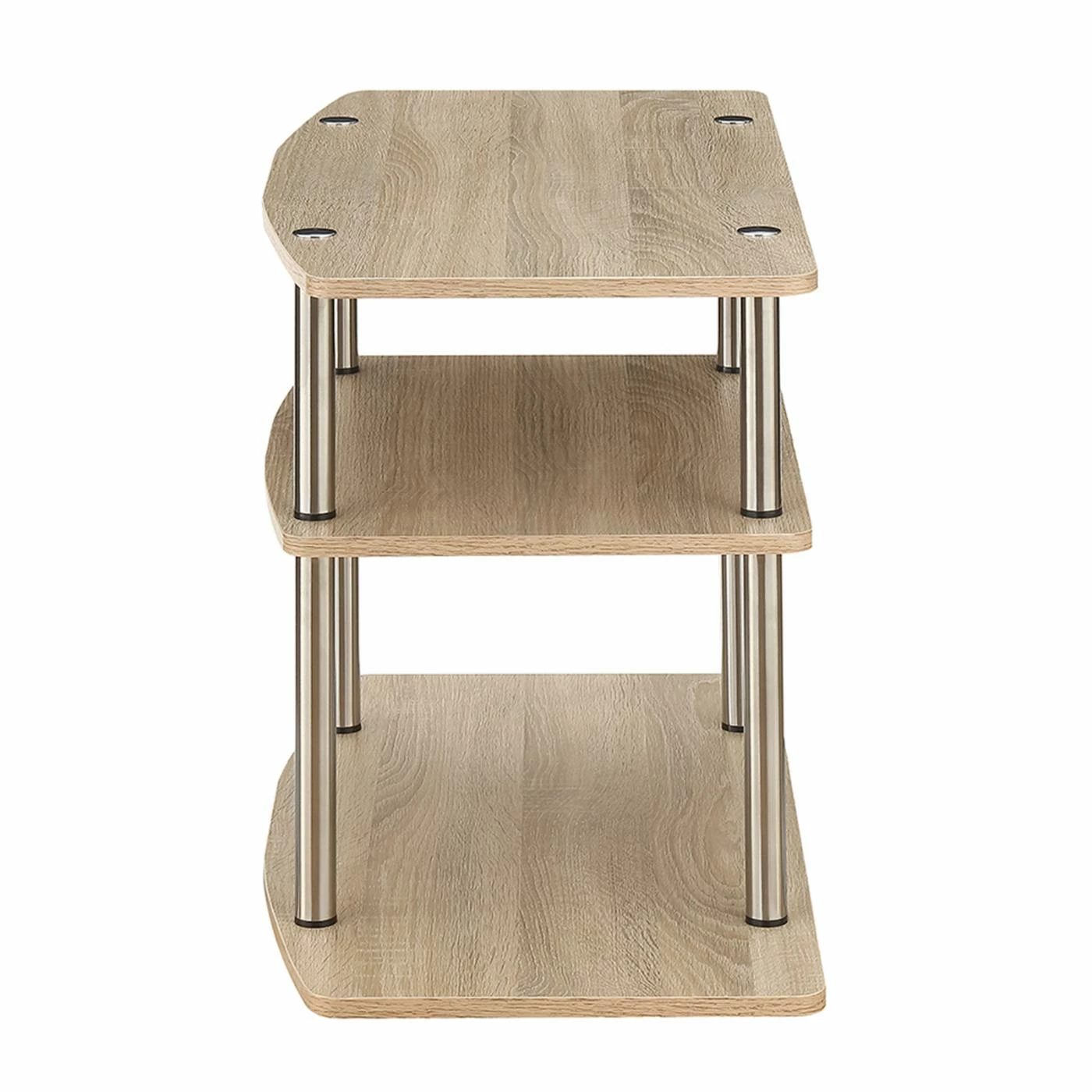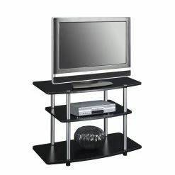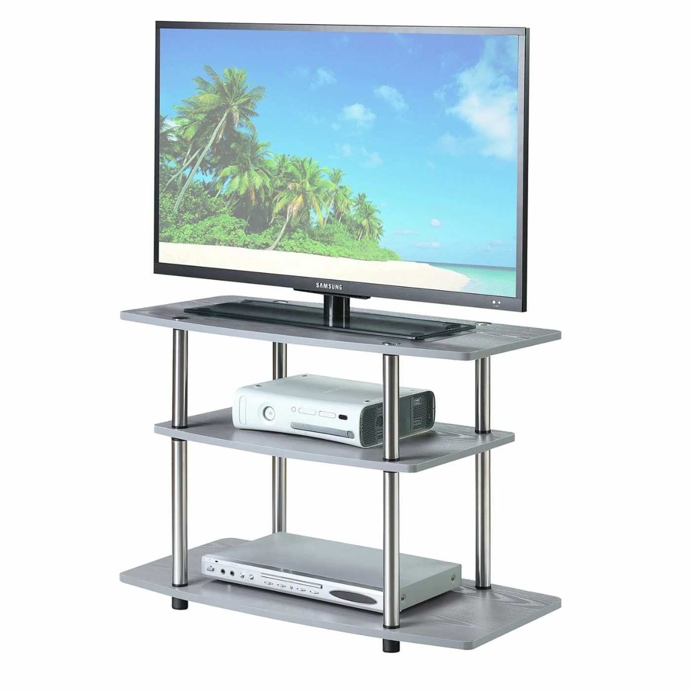 Modern TV stands are often designed as wide, low-set affairs that take up a great deal of space, but the Convenience Concepts Designs2Go 3 Tier TV Stand gives you that same contemporary style while adding height and style to your space. Four stainless steel poles are used to connect three shelves of warp-free particle board. The shelves are offered with high-quality veneers in the color of your choice, allowing you to coordinate it to complement your space. The open design offers maximum versatility, making this a simple choice for any space.