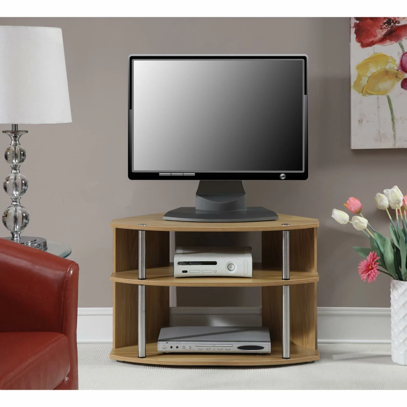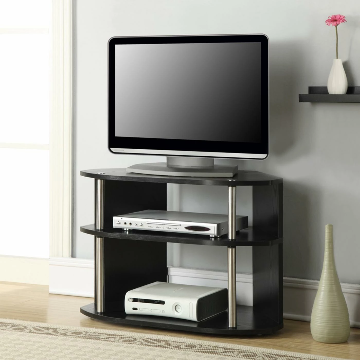 Swiveling a full 360 degrees, the Convenience Concepts Designs2Goโข Swivel TV Stand – Black and Stainless Steel lets your entertainment follow you wherever you go. The classic black wood shelves provide more than enough storage. You needn’t worry about strength, this stand has stainless steel support poles.