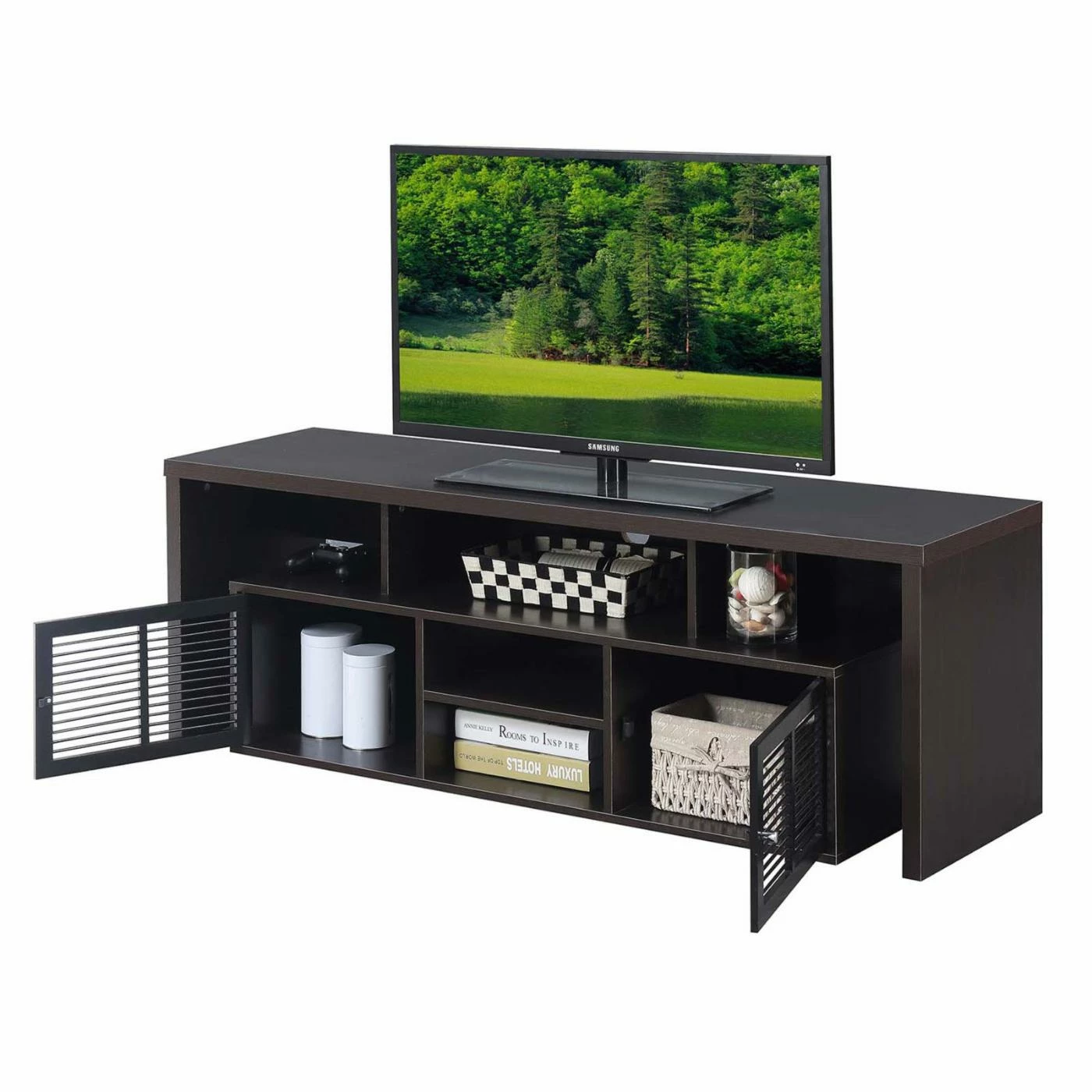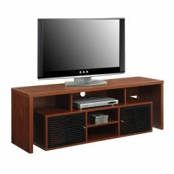House your TV and all of your tech gear in style on the Convenience Concepts Lexington TV Stand. This retro-modern media unit has an expansive top surface for a large screen and tons of storage down below. There are open areas with clever cord management holes and a pair of closed storage cabinets spiced up with wood spindle doors. Choose from the available finishes.