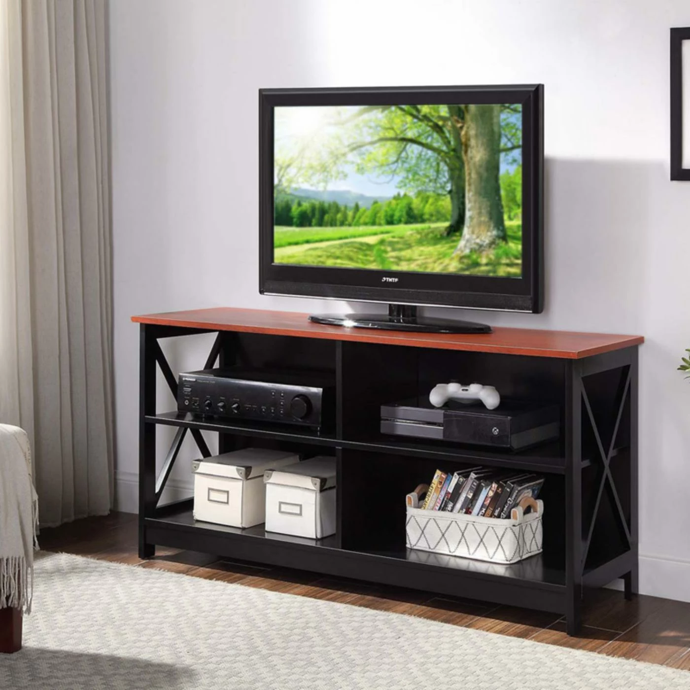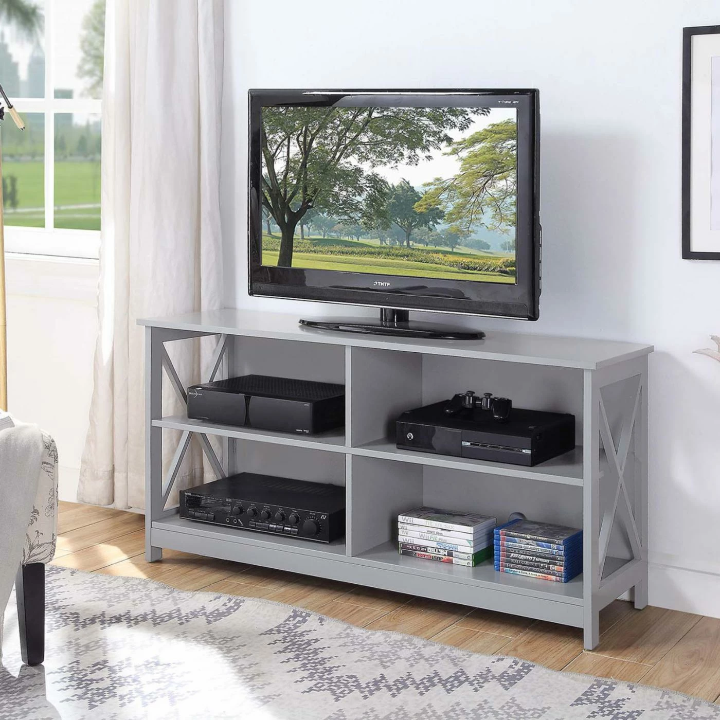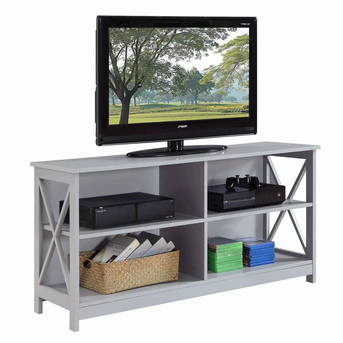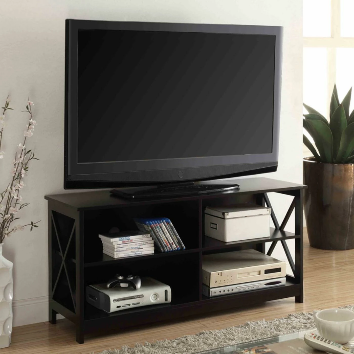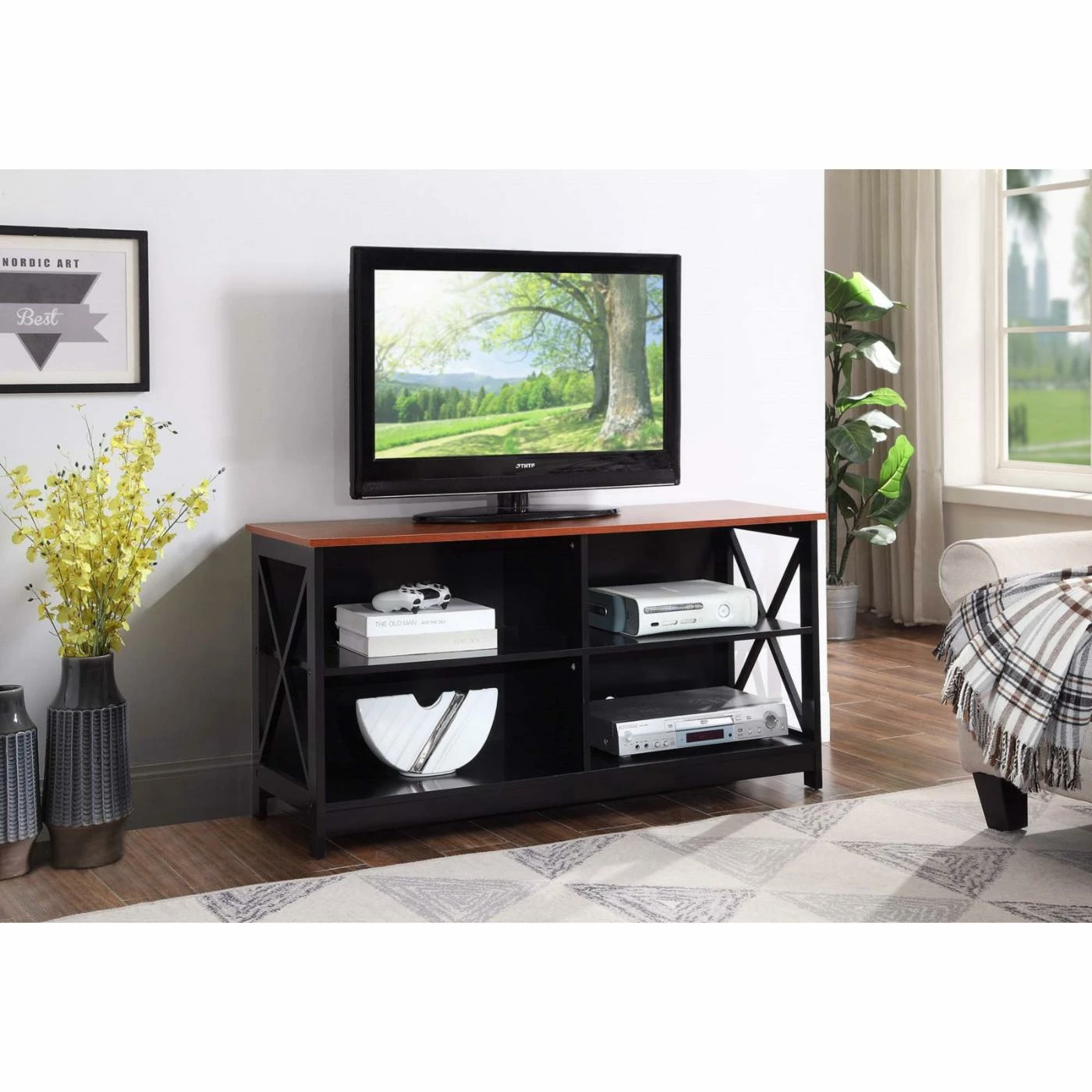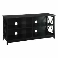 The Convenience Concepts Oxford TV Stand features a wonderfully warm mission-style appearance that’s beautiful and simplistic. Thick, long-lasting wood solids are used to construct the piece with a realistic wood-grain veneer surface. Four open rectangular shelves are built into the face of the stand with open X-shaped sides. Store books, movies, game consoles, media players, stereos, and more with convenient access to everything. The stand is available in your choice of finish option. Ideal for classical and modern decors alike, this unit is a must-have in any home.