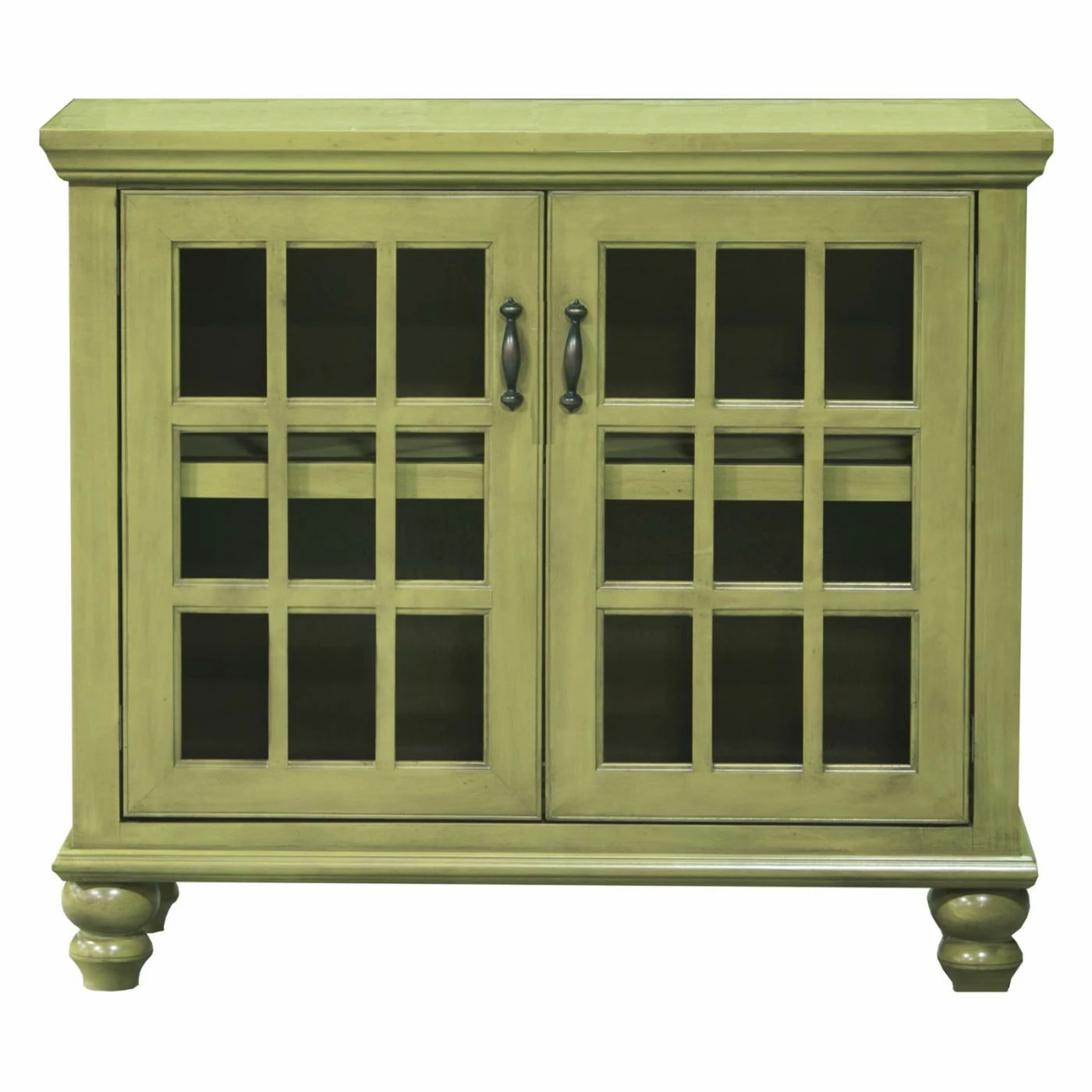 The Eagle Furniture 42 in. Modern Country Entertainment Console lends a casual elegance to your home media area. This stylish entertainment console sits prettily on turned bun feet and boasts two windowpane-style glass doors that open wide to reveal a fixed interior shelf. It’s quality crafted from solid, furniture-grade birch wood and offered in your choice of available finish to best meet your decorative tastes.