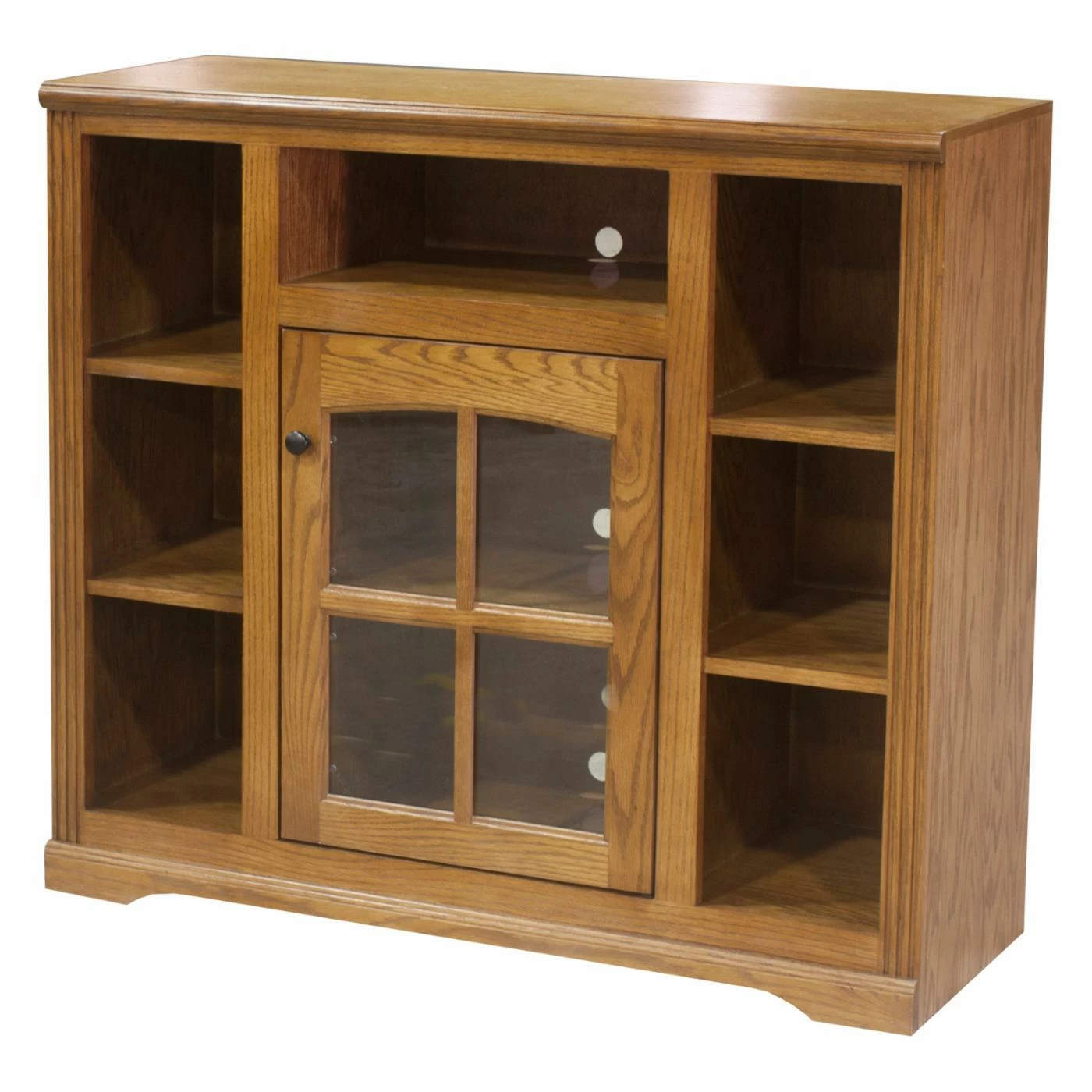 With ample space to display your flat screen, electronic components, and accessories, the Eagle Furniture 45 in. Oakridge Bookcase Entertainment Console takes it a step further by providing additional open shelving to showcase your books or artful objects. This quality-crafted bookcase entertainment console is built from furniture-grade, solid oak wood and comes in your choice of available finish. It includes five fixed shelves, a glass door cabinet, open component storage, and a cord-managing back panel.