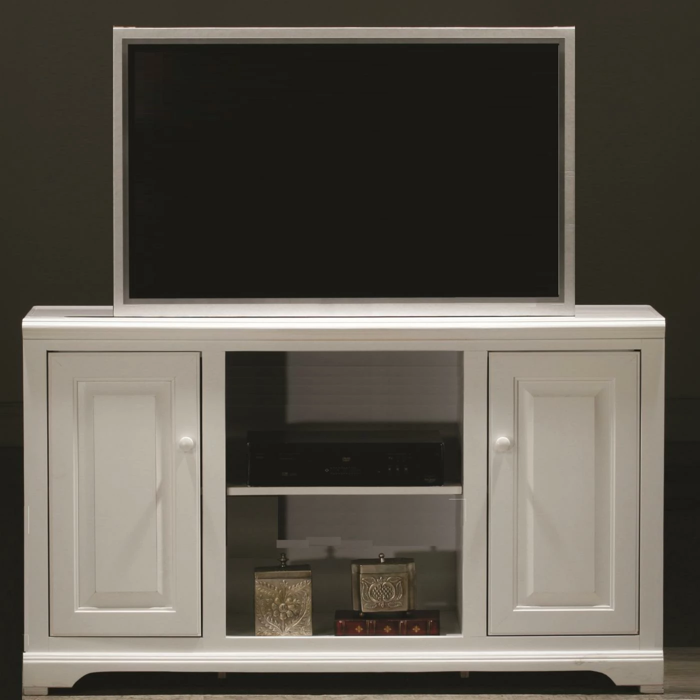 Showcase your flat screen TV with the traditional appeal of the Eagle Furniture 55 in. Savannah Thin-Screen Entertainment Console. This solid birch wood-constructed entertainment console boasts a narrow profile that works best with thinner screens. It comes in your choice of available finish options to best suit your dΓ©cor style and includes two cabinets with raised panel doors, three fixed shelves, and an open center for component storage. Decorative molding completes the look of this versatile and functional piece of furniture.