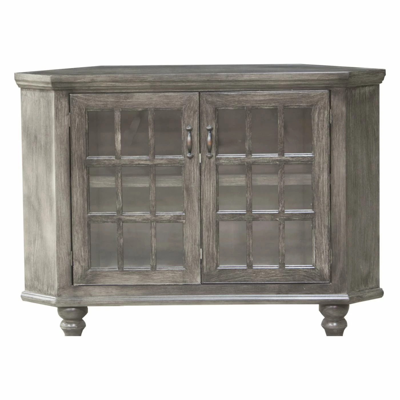 A stylish choice for your farmhouse or shabby chic-designed home, the Eagle Furniture 56 in. Modern Country Corner Entertainment Console lends a homey touch to your media area. Brilliantly designed to utilize unused corner space, this entertainment console lends stylish efficiency to your dΓ©cor. It’s quality constructed from solid, furniture-grade birch wood and offered in your choice of available finish. Two windowpane-style glass doors open up to reveal a fixed interior shelf and cord-managing back panel.