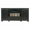 Designed with a narrow profile, the Eagle Furniture 66 in. Thin Entertainment Console works best with thinner flat screen TVs. This entertainment console is quality crafted from solid birch wood and comes in your choice of available finish. It offers ample space for storage and display with two cabinets, four fixed wood shelves, and an open spot for your sound bar. Decorative molding and a cord-managing back panel complete the look of this high-quality furniture piece.