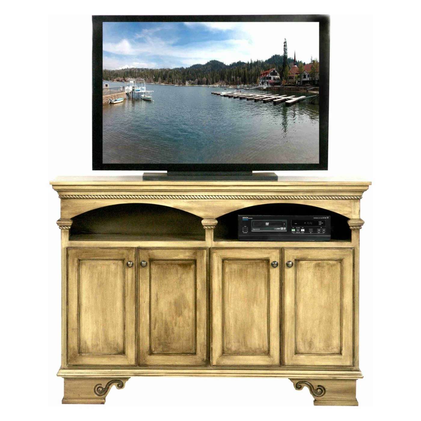 Beautifully detailed, the Eagle Furniture American Premiere 58 in. Entertainment Console with 4 Doors brings a rich, refined look to your TV viewing area. Decorative molding, carved scrollwork, and arched openings give this entertainment console a traditional elegance. Quality constructed from solid birch, this well-built piece comes in your choice of available finish to best match your dΓ©cor. It also offers plenty of storage with closed cabinetry and places to hold your electronic components.