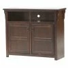 With its quality oak wood craftsmanship and traditional design elements, this Eagle Furniture Classic Oak Customizable 50 in. Tall Corner TV Stand is the perfect unit to store your TV and other electronics. Designed to fit in corners, it boasts quality oak craftsmanship while showcasing a sleek woodgrain pattern and antique brass hardware for a touch of traditional style. The shelf and two-door cabinet offer plenty of storage, and it can support TV screens up to 55 in. wide.
