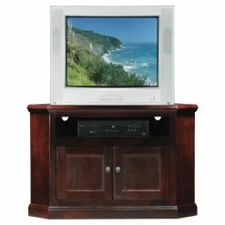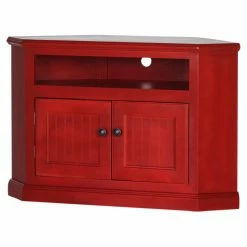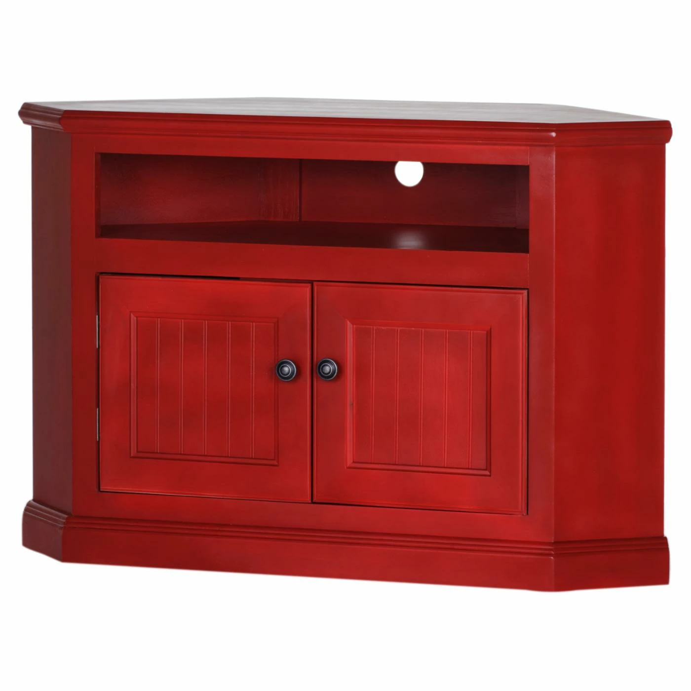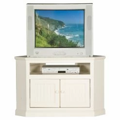 Snuggle the Eagle Furniture Coastal 41 in. Corner Entertainment Center into any corner of home theater to save floor space and add style. This sturdy birch wood entertainment center features two beadboard panel doors for casual style and comes in a wide variety of finish options. It accommodates up to 45-inch TV on top. The generous media opening houses components and the wire management hole keeps cords tidy. Twin beadboard cupboard doors open to reveal ample storage.