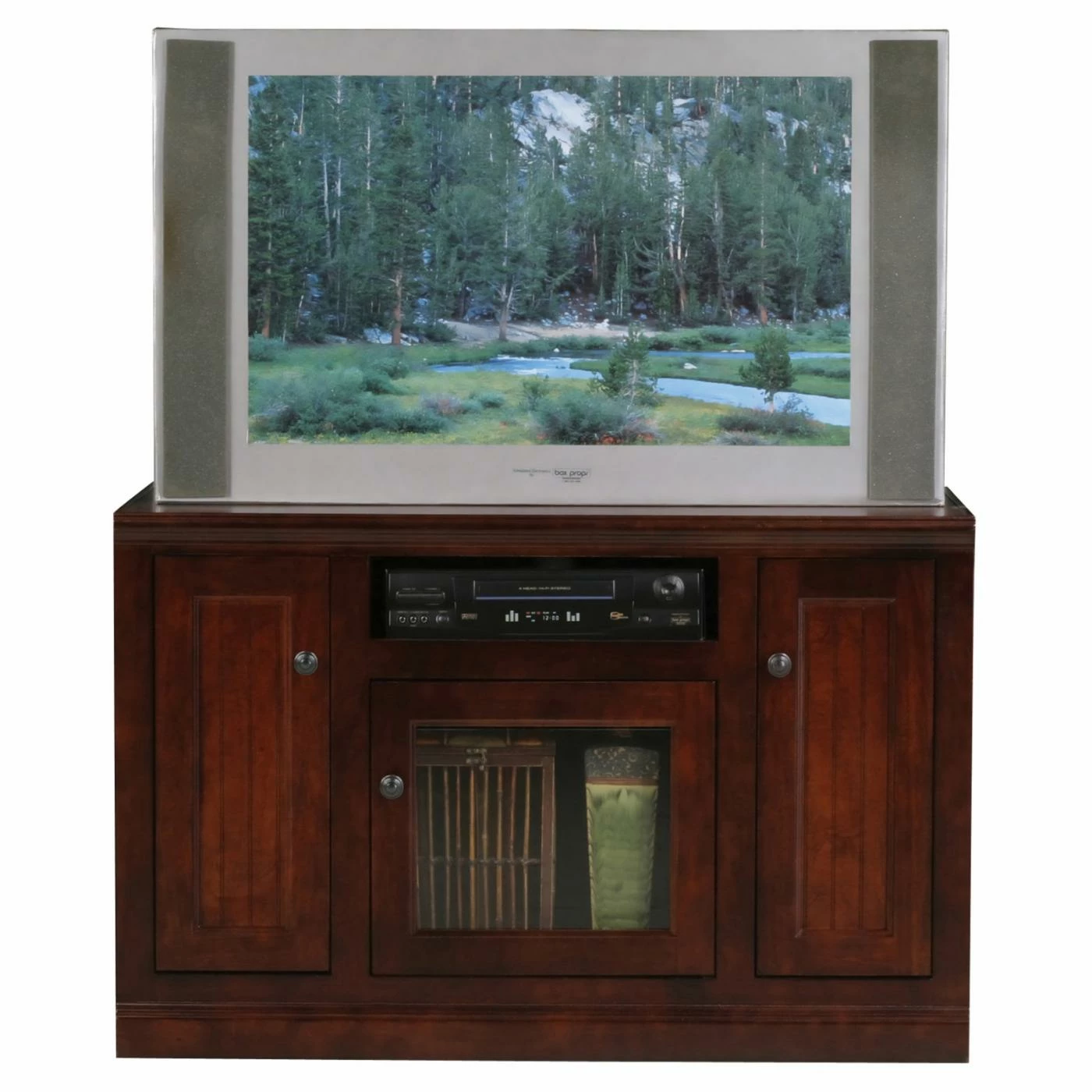 - Holds most 49-inch wide TVs