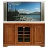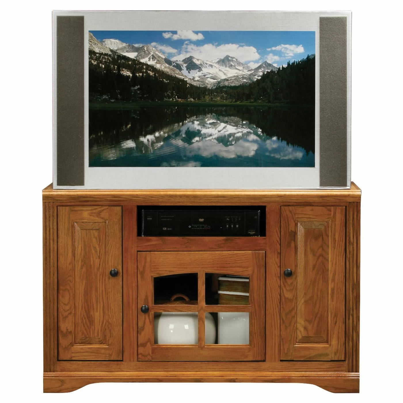 The Eagle Furniture Oak Ridge 45 in. Wide-Screen TV Stand lets you create a stylish and functional entertainment space. This stand is made of sturdy oak with finish options to match your dΓ©cor. An open shelf is perfect for video components while a lower glass front door adds space for display items or a game console. Side panel doors provide even more storage.