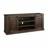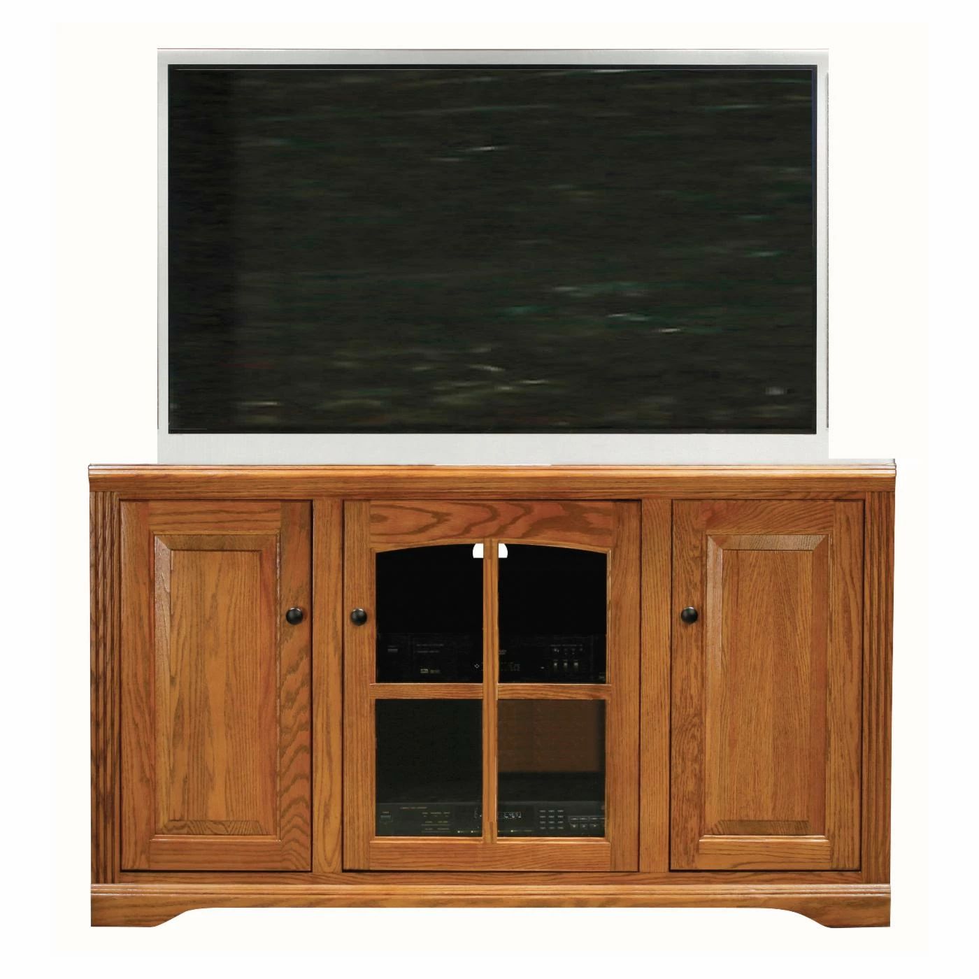 Display your TV set while storing electronics and other items in this Eagle Furniture Oak Ridge 55 in. Tall Entertainment Console. Built to last with oak hardwood, it boasts ample storage space, includingΒ three fixed shelves, one glass door, and two cabinet doors. Sleek details like the crown molding, fluted side molding, and black brushed metal hardware give it a casual yet transitional feel. Offered in your choice of available finishes.