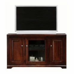 The Eagle Furniture Savannah 55 in. TV Stand is a great way to liven up any room with style and design. This stand holds up to a 61-inch television and offers spacious storage with three fixed shelvesΒ for games or movies behind dual side panel doors. A center glass panel door opens to reveal ample space for components.