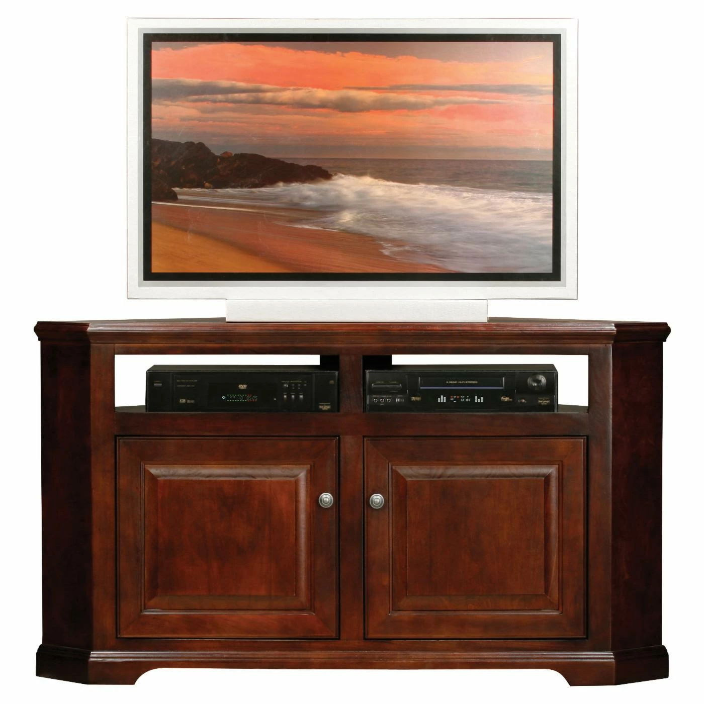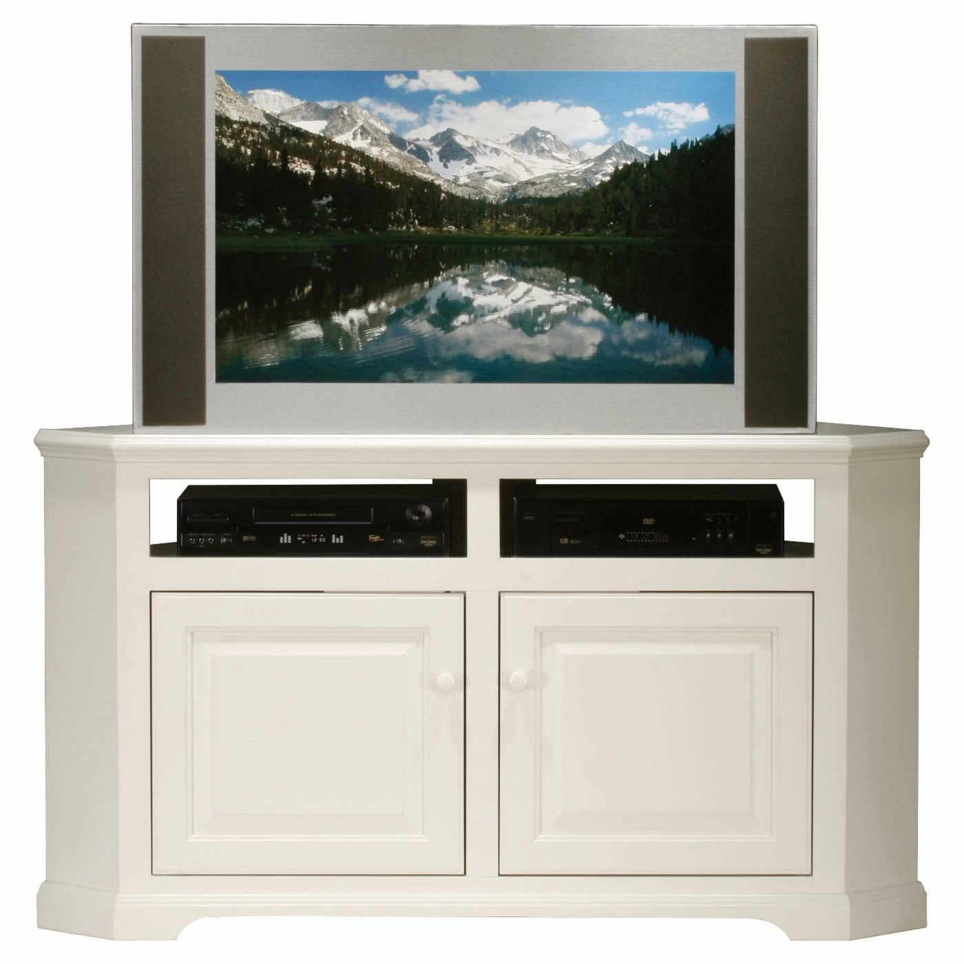 Designed to fit your space, the Eagle Furniture Savannah 56 in. Wide-Screen Corner Entertainment Center tucks into the corner and comes in a wide variety of finish options. This wooden entertainment center has classic raised panel doors and accommodates up to 62-inch flat panel TV. Two generous spaces below offer room for media components and the open back maximizes ventilation. Twin cupboard doors open to show plenty of storage room inside.