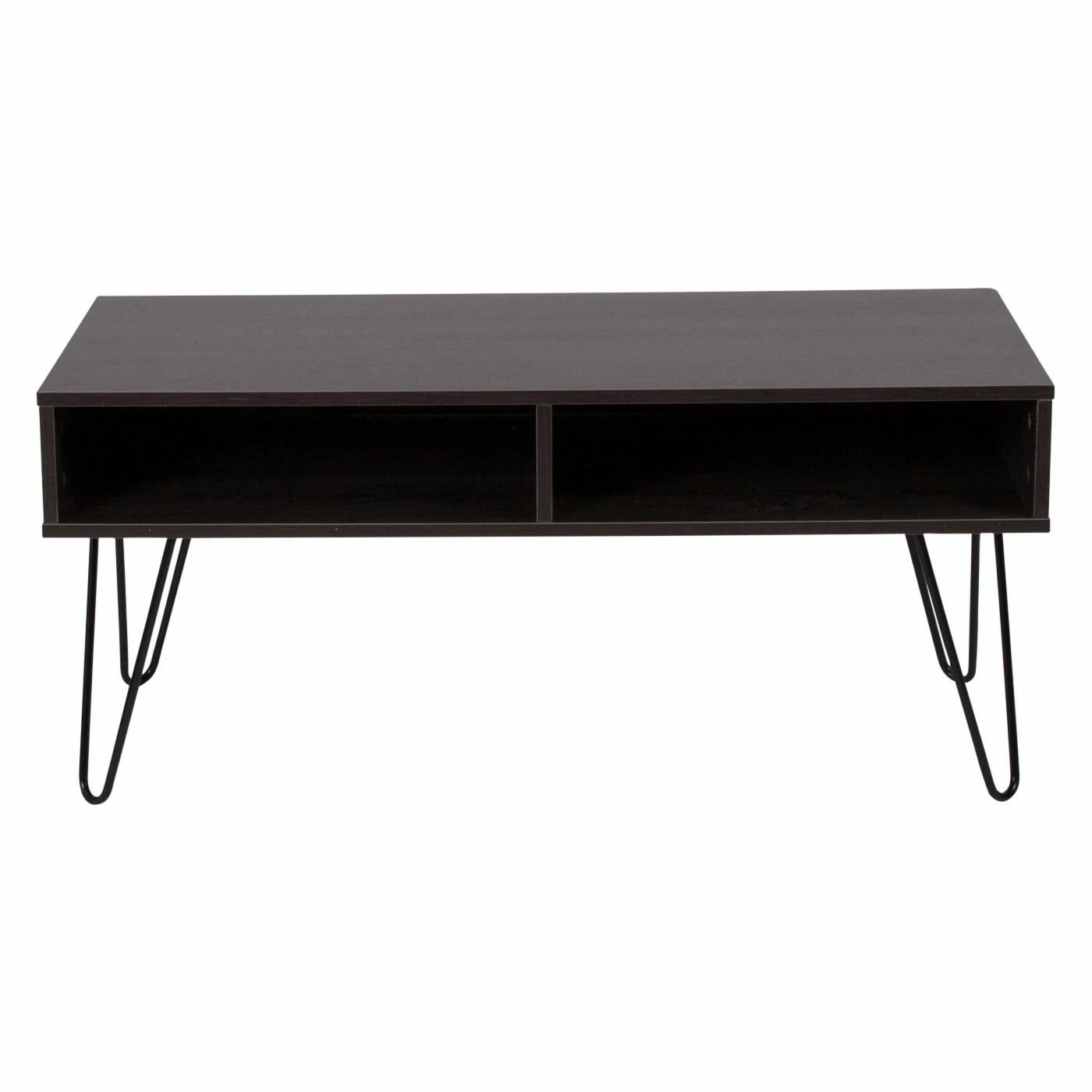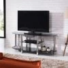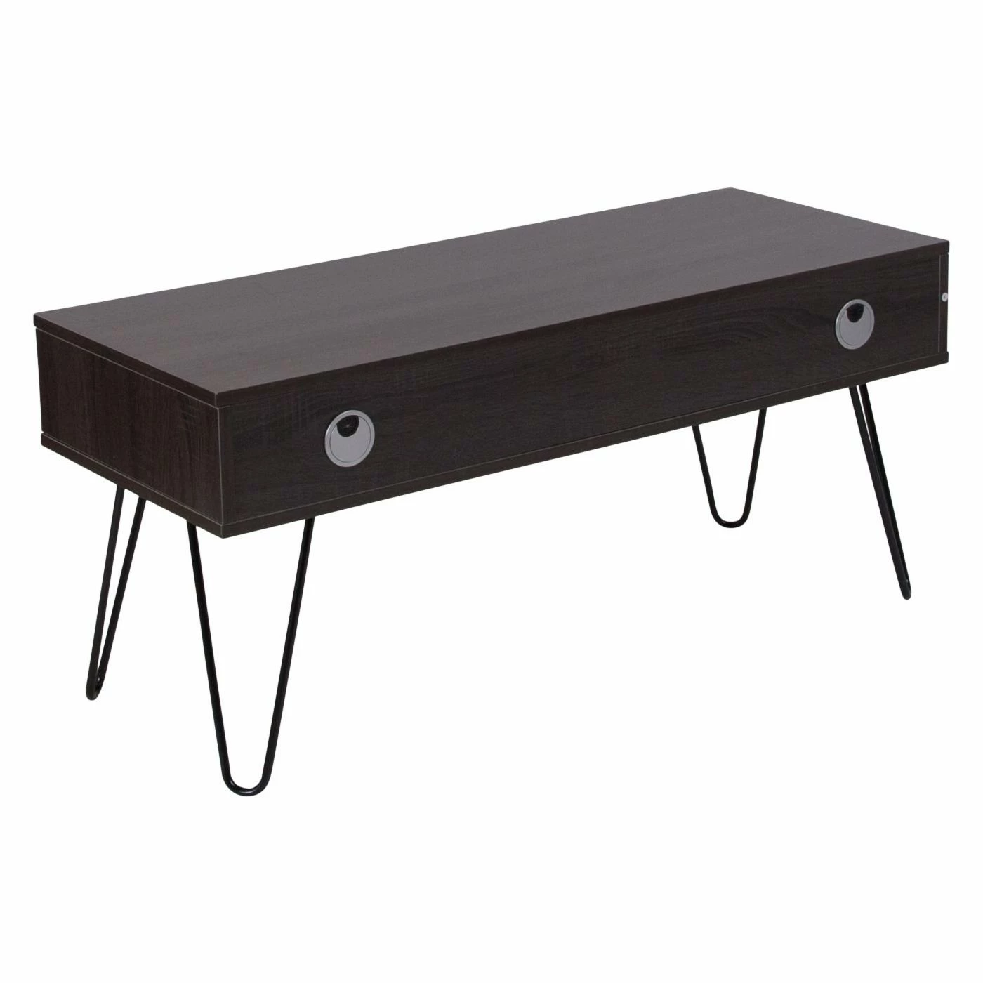 The Flash Furniture Oak Park TV Stand provides a simple perch for your new modern TV. The top comes with two open lower console shelves with cord-management holes in the backing. The cabinet top is crafted from thick, durable engineered wood with a driftwood brown finish. Metal hairpin legs support the piece, finished in black.