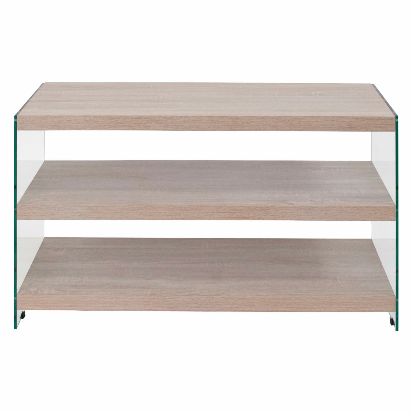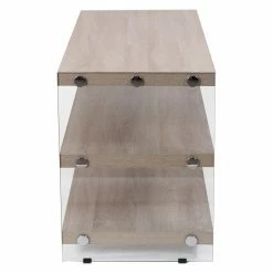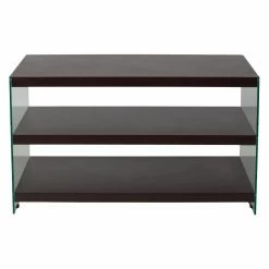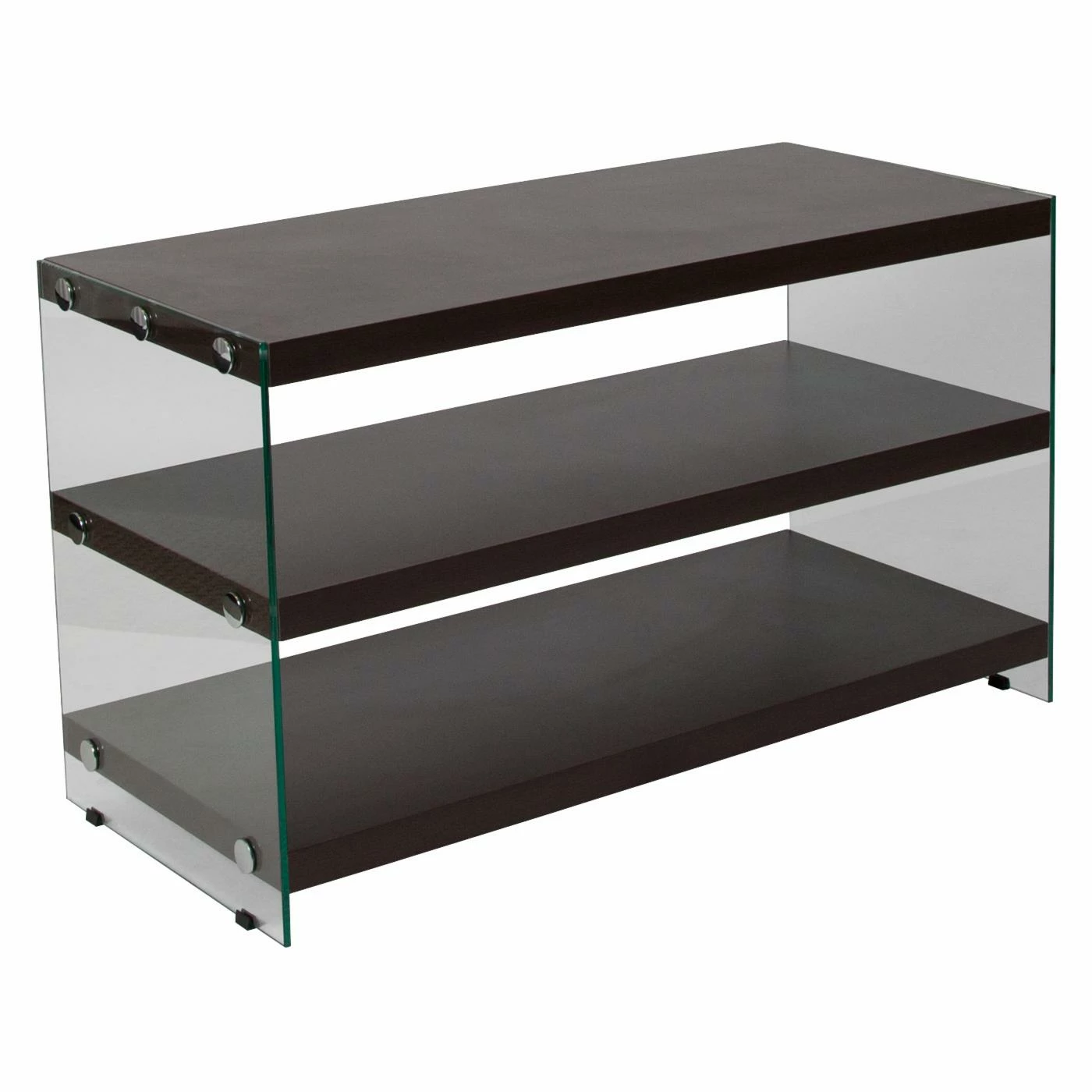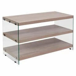 You’ve picked out your new big-screen TV, now select the Flash Furniture Wynwood TV Stand for a perfect support piece. With sharp, simple lines and strong colors, this TV stand makes an exciting addition to your modern living room. Thick, square clear tempered glass sides support the stand, giving a floating look to the three shelves. Each shelf is made from lightweight and durable engineered wood with an open back for cord-management. Choose from available finish options.