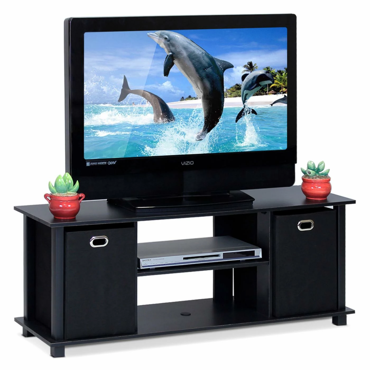 Minimal style and sturdy quality meet in the Furinno Econ Entertainment Center with Storage Bins. Unique, open display racks and spacious, discreet, enclosed-storage fabric drawers are ideal for storing any electronics or media needed. The spacious stand accommodates TVs up to 37 inches wide. Modern and understated, this stand is an ideal storage solution for any living room or den.