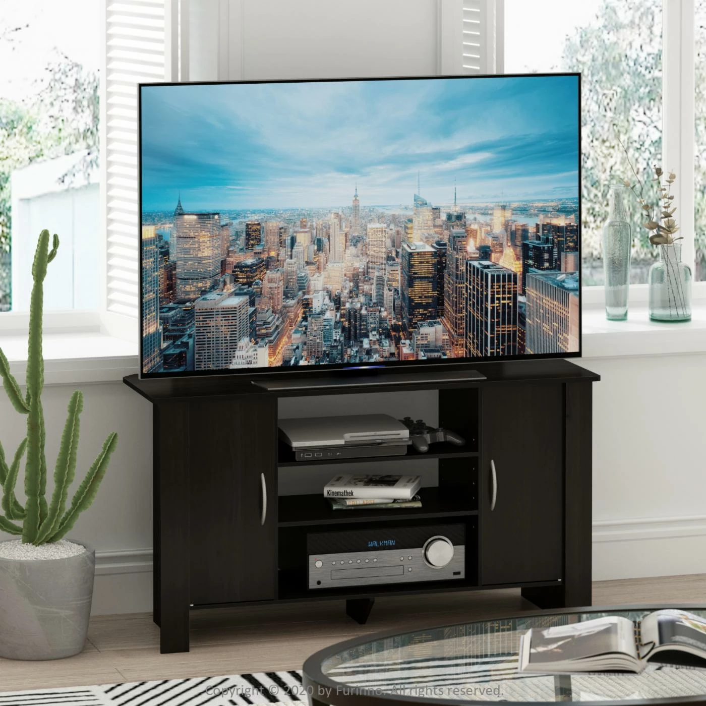 Add classic style to your room with Furinno Econ TV Stand Entertainment Center. Modern, understated style and clean lines makes this table a perfect fit for any dΓ©cor. Spacious open-storage shelves, an open display rack, and single-door cabinets are ideal for organizing electronics or media. The stand accommodates TVs up to 42 inches wide. With clean lines and sturdy construction, this stand is an ideal storage solution for any living room or den.