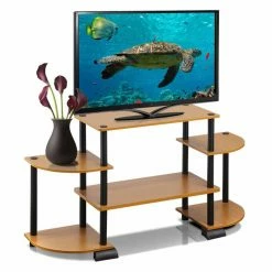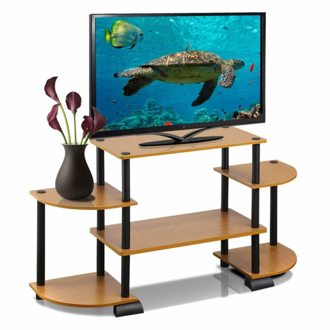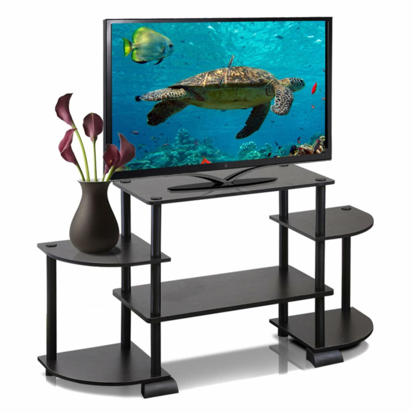 Get simple, savvy storage with the Furinno Turn-N-Tube Rounded Corner TV Entertainment Center. Five spacious open-storage shelves are ideal for organizing electronics or media, and the stand accommodates TVs up to 37 inches wide. No-tools assembly means anyone can build this stand in a flash. Primarily recycled-material construction means this stand is as smart as it is functional. Stylish and unfussy, this stand is an ideal storage solution for any living room or den.