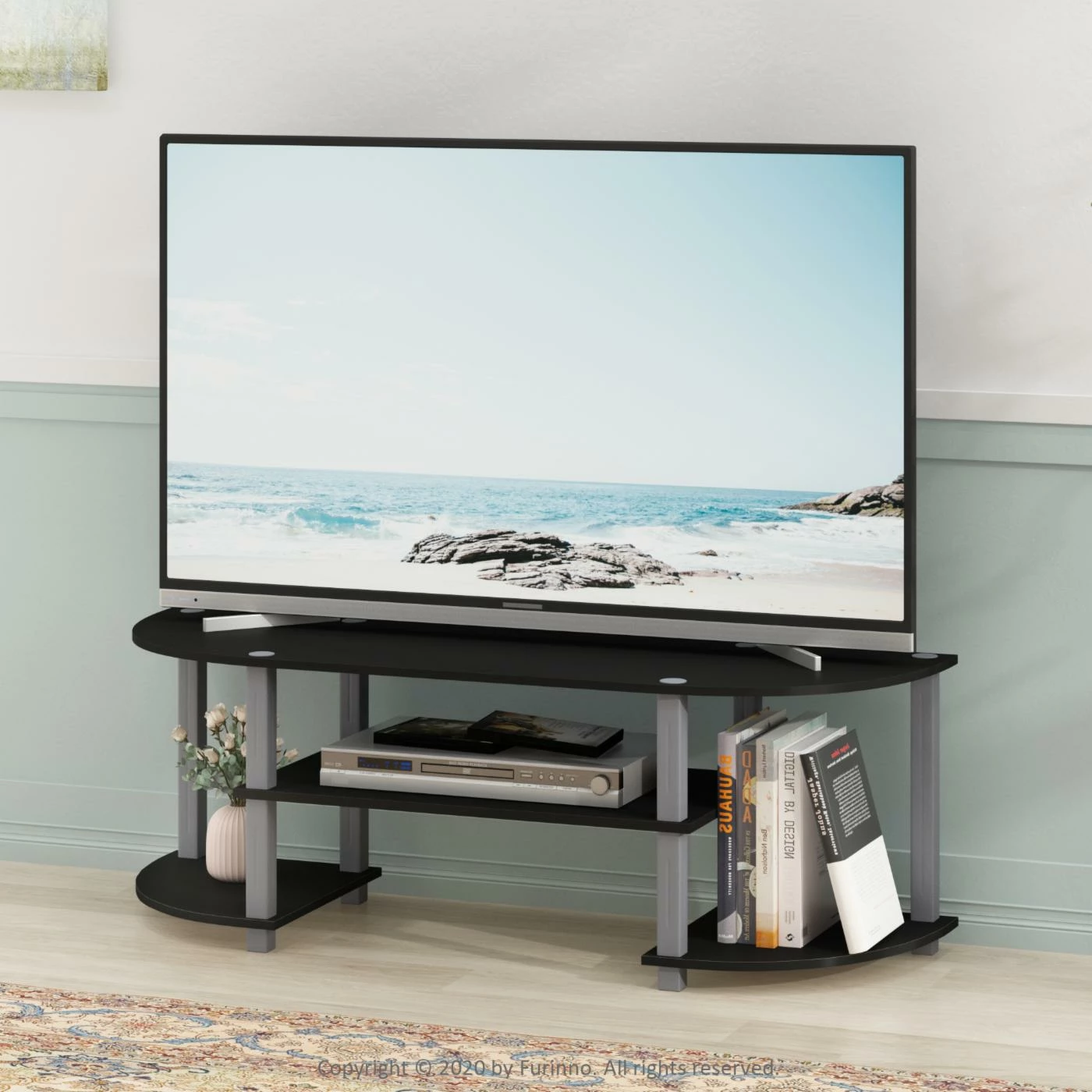 Make a striking, modern statement with the Furinno Turn-S-Tube Wide TV Entertainment Center. Three open-storage shelves are ideal for storing electronics or media, and the stand accommodates TVs up to 47 inches wide. Made of 95% to 100% recycled materials, this table is a smart choice, too. Its attractive, architectural design adds refinement to any living room or den.