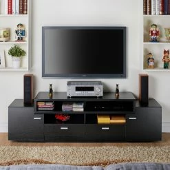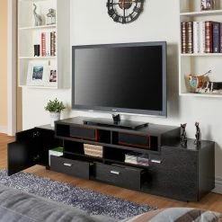 You’ll love the modern beauty and functionality of the Furniture of America Stockton Multi Storage TV Stand. Beautifully crafted from manufactured wood and medium density fiberboard (MDF), this sophisticated, mid-century modern inspired TV stand comes in your choice of beautiful colors. Six shelves and two drawers provides ample storage space for movies, consoles, remotes, and more, helping to keep your home neat and organized.