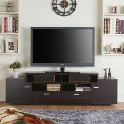 You’ll love the modern beauty and functionality of the Furniture of America Stockton Multi Storage TV Stand. Beautifully crafted from manufactured wood and medium density fiberboard (MDF), this sophisticated, mid-century modern inspired TV stand comes in your choice of beautiful colors. Six shelves and two drawers provides ample storage space for movies, consoles, remotes, and more, helping to keep your home neat and organized.